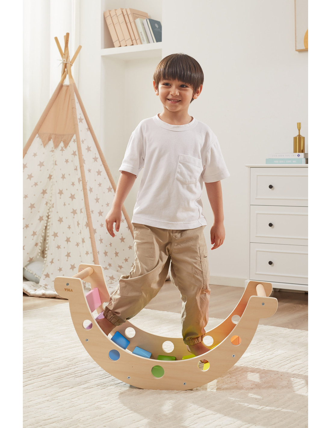 VIGA Wooden Rocker Bridge 2 in 1 Montessori Rainbow Swing