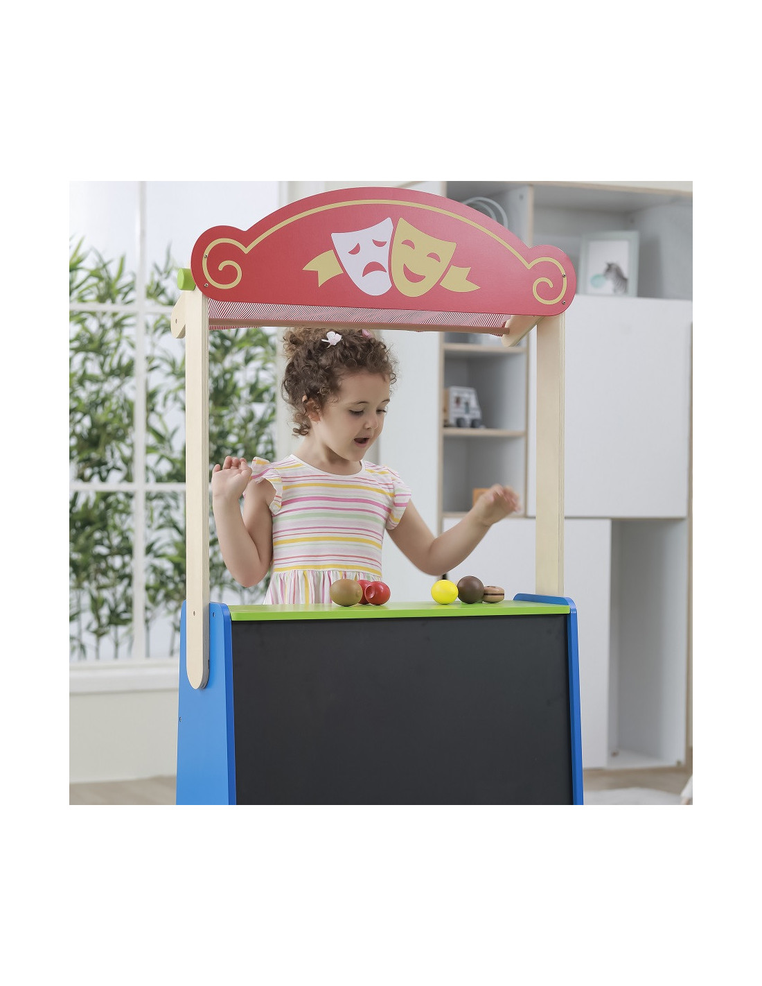 Ta wysokiej jakości zabawka marki Viga Toys to połączenie teatru i sklepu spożywczego. Wystarczy odwrócić zabawkę i możemy już wcielać się w zupełnie nowe role.