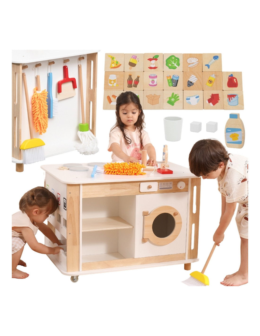 Little ones can cook, do laundry, clean, and learn about recycling while role-playing realistic home scenes. Interactive elements, like an ice maker or a lawnmower with sound effects , make play even more exciting. The island style and numerous accessories encourage cooperative play and develop social skills. This is the perfect gift for children aged 3 and up , combining everyday learning with creative play!
