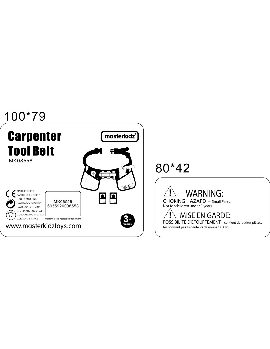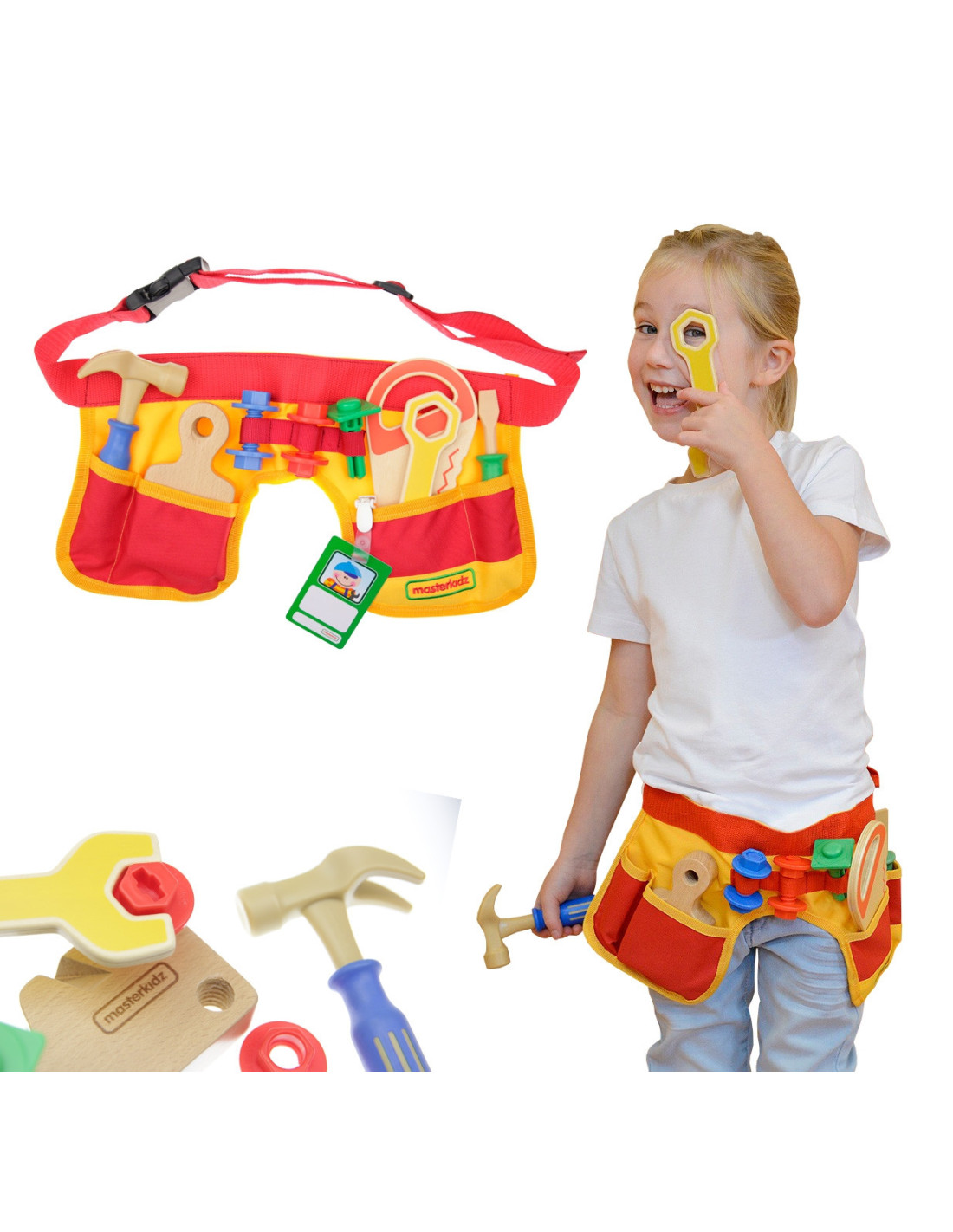A fabric belt and a set of 12 carpentry tools from the MASTERKIDZ brand. This set allows for all types of carpentry work and also includes a worker's ID badge , on which the child can write their name and attach a photo. Your little one will feel like a true professional , able to repair any problem!
