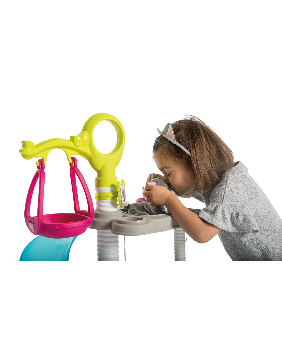 - - Środek uzupełniają również: huśtawka, zjeżdżalnia, taca z piaskiem, miska z jedzeniem, łopata, lusterko, grzebień.