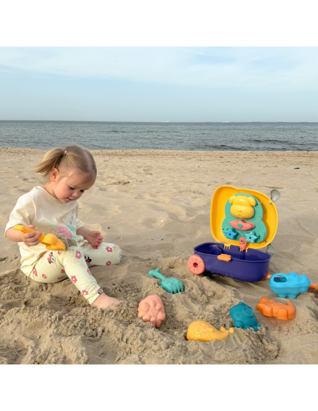 Zestaw do zabawy piaskiem i wodą od marki WOOPIE zaspokoi wszystkie potrzeby podczas podróży, zabawy w piaskownicy oraz plaży! Zestaw 3w1 - wszystko zapakowane jest w walizkę, w której znajdują się akcesoria do piasku i zabawka wodna. Walizkę wystarczy położyć na tył wypełnić spód wodą i dzięki kubeczkowi wlać wodę do głowy i obserwować jak ścieka woda. Taka zabawa rozwija zmysły dziecka oraz pozwala dziecku skupić się na zabawie. Akcesoria pozwalają na kompletną zabawę w piasku, nawet we dwoje! Zabawka spełnia wszystkie potrzeby do zabawy na dworze!