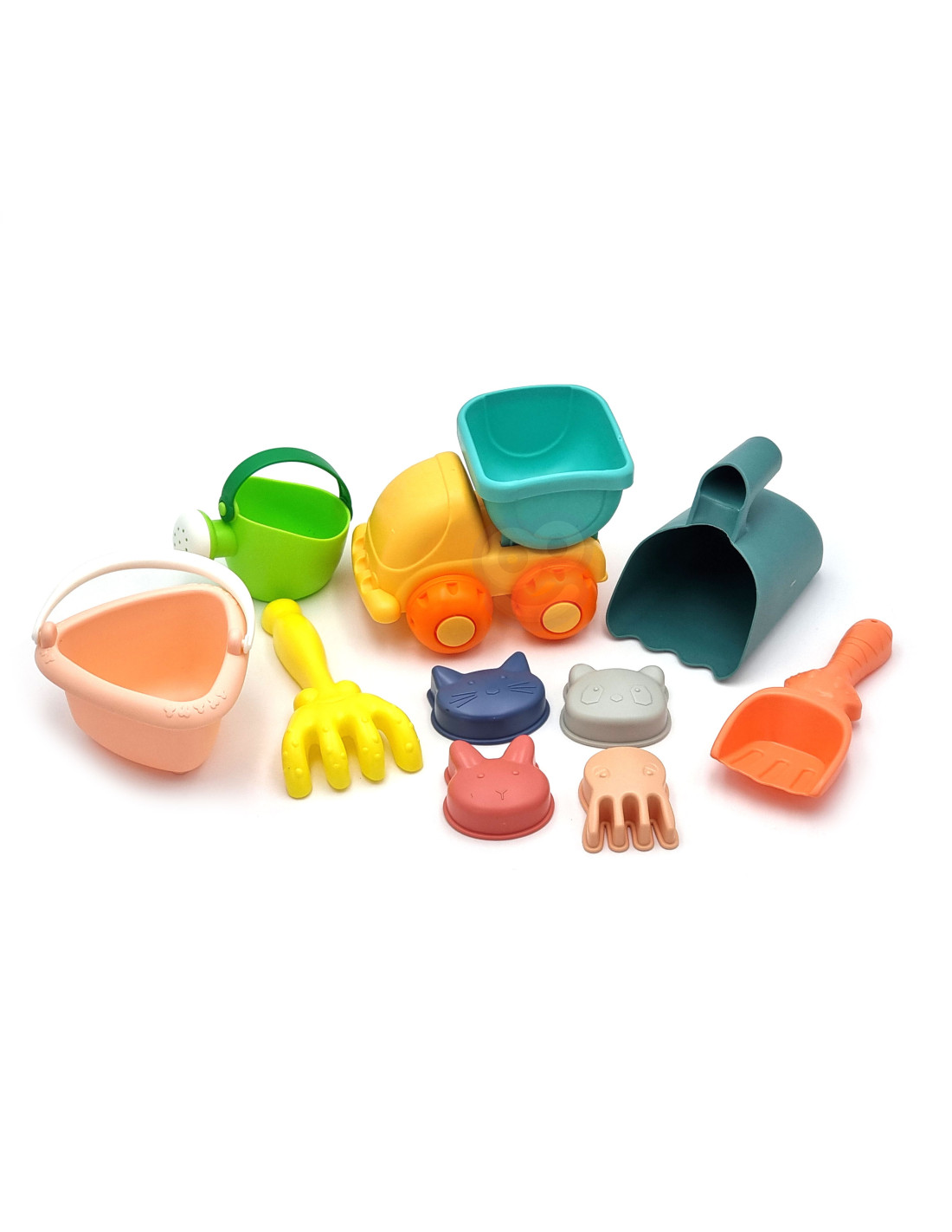 The Sand Bucket Set from WOOPIE is a great addition to the sandbox or even the garden. The set includes 7 pieces : a bucket, a watering can, 2 molds, a shovel and rake, and a toy car. The set features a beautiful pastel design . The bucket and watering can have a convenient carrying handle . Great fun guaranteed in the sandbox , on the beach , or even in the garden !