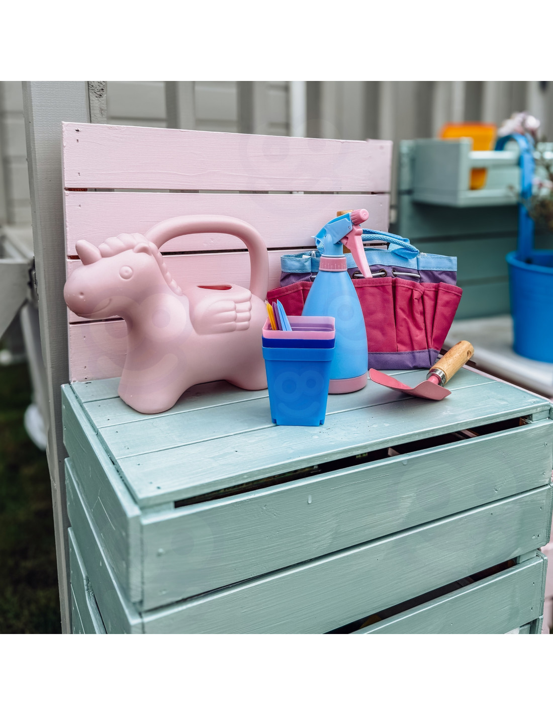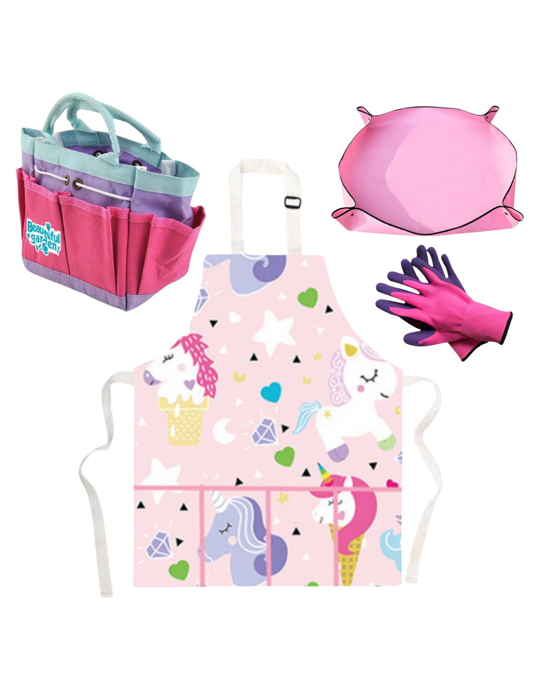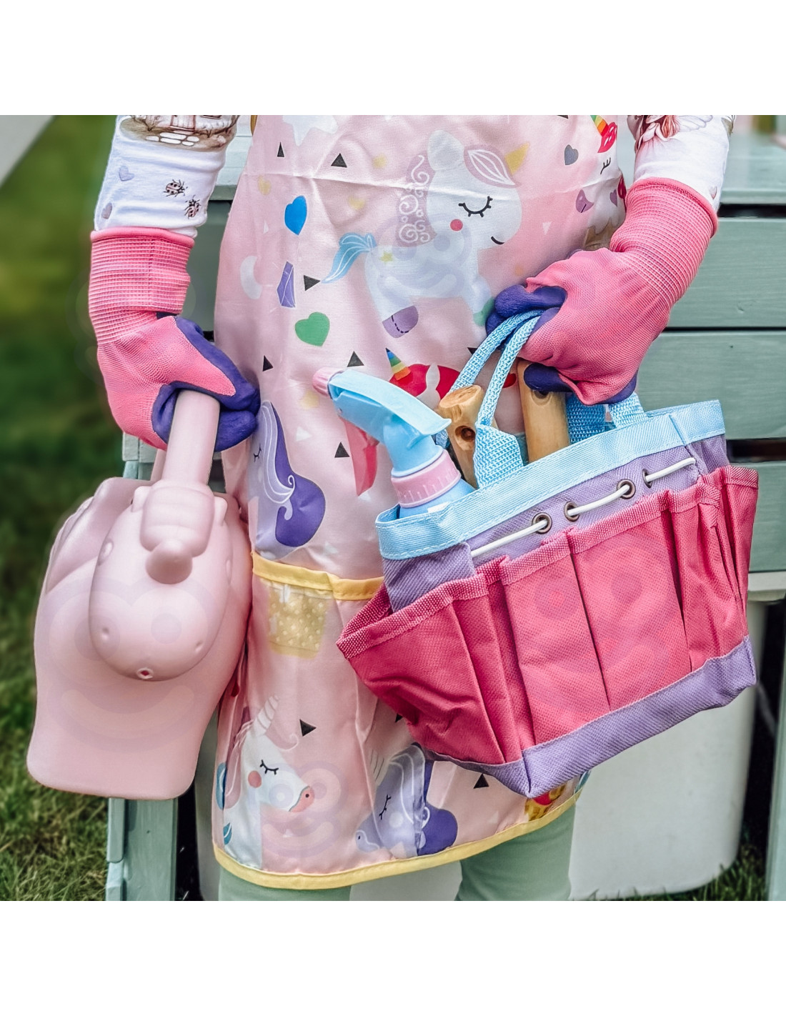The colorful Little Gardener's Set with a unicorn motif from Woopie is the perfect way to encourage children to engage in creative outdoor play. With practical and safe tools, little ones can plant , cultivate their own small garden , and discover the secrets of nature . The colorful apron with an adorable unicorn pattern protects clothes and encourages children to become even more eager gardeners. The set is also perfect for home, on the balcony, at the beach, or during family outings. It's a perfect gift that develops imagination, responsibility, and a love of nature from a young age.