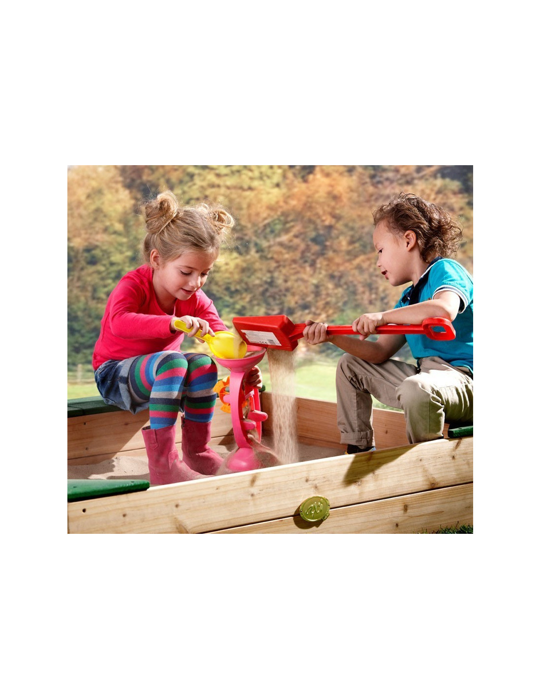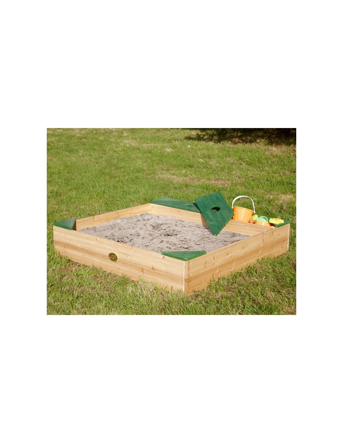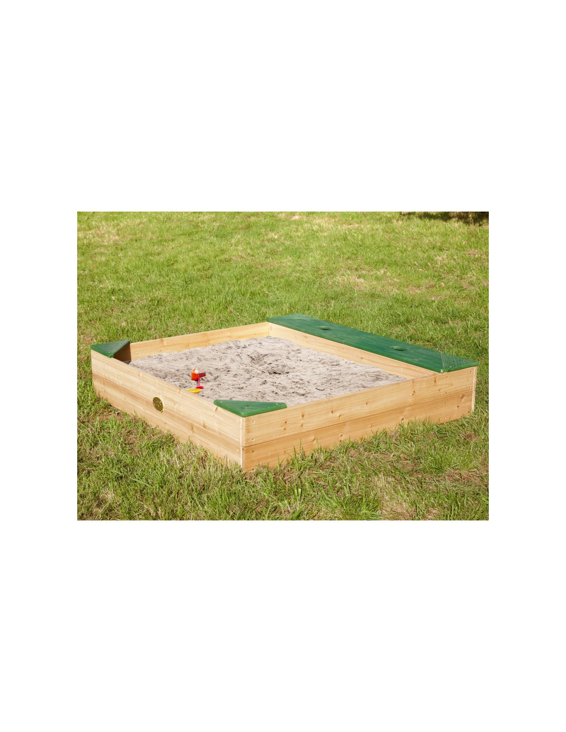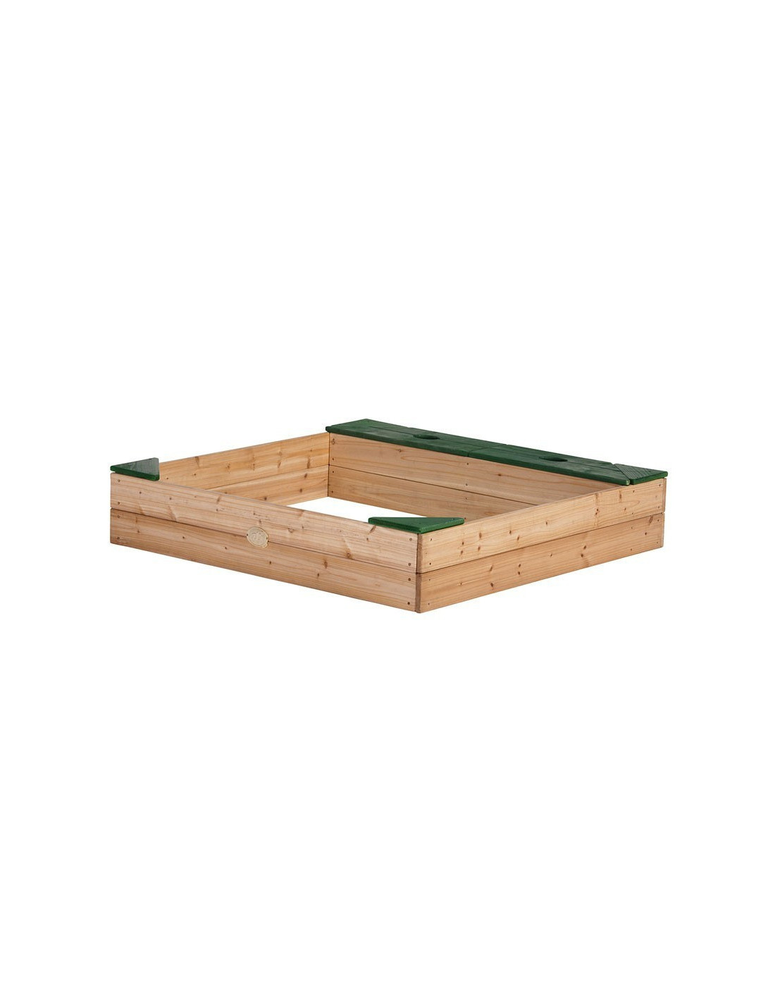 Piękna i wszechstronna, drewniana piaskownica AXI to doskonałe dopełnienie przydomowego placu zabaw. Piaskownica została wyposażona w schowek na akcesoria, w którym dzieci mogą przechowywać swoje łopatki i wiaderka. Schowek posiada drewniane pokrywy, które pełnią funkcję ławki. Na każdym narożniku znajdują się wygodne siedziska. Do zestawu została dołączona plandeka, która pełni funkcję pokrywy oraz specjalne podłoże przeciw chwastom. W piaskownicy zmieści się nawet 350kg piasku! Całość jest łatwa w montażu.