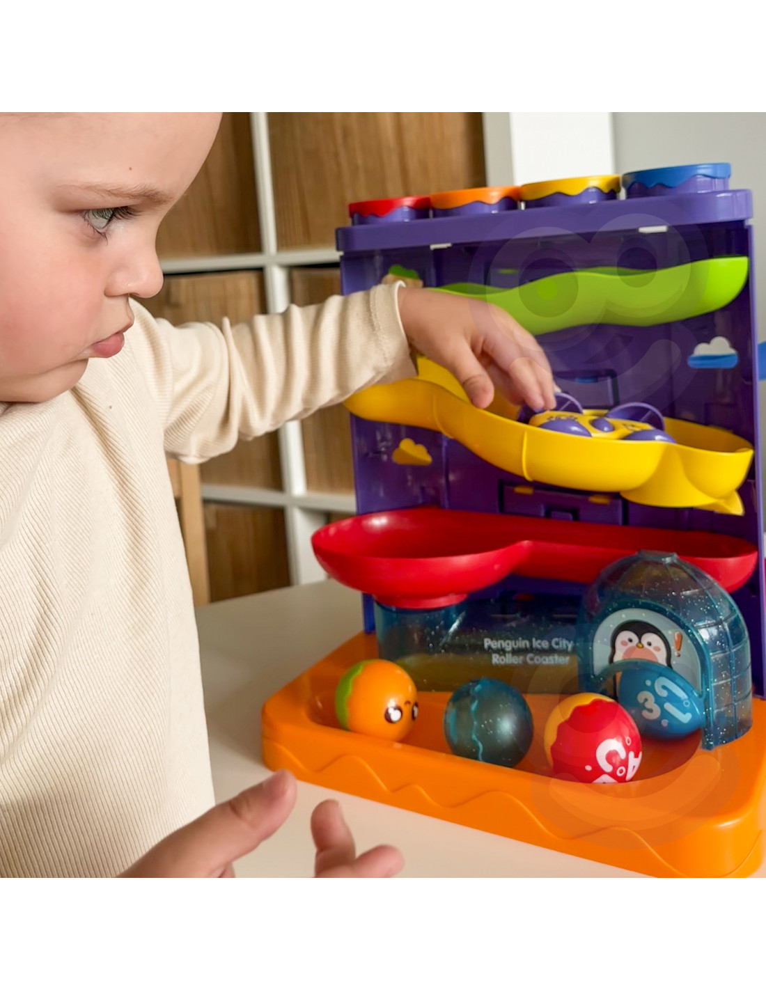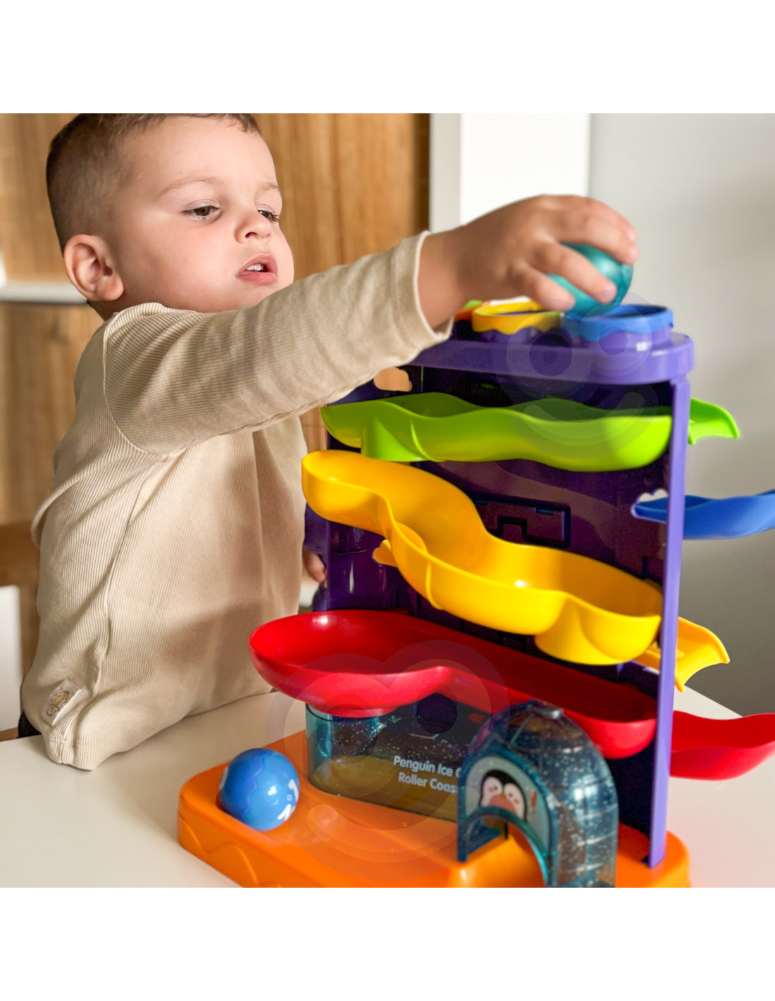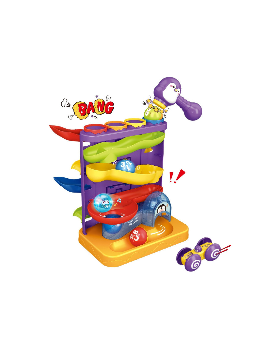 Tor Kulkowy Kulodrom 3w1 Wbijak z Młoteczkiem Zjeżdżalnia dla Samochodzików od marki WOOPIE to multi funkcyjna zabawka, która rozwinie i zaciekawi dziecko. Posiada 3 główne funkcje. Wbijak - zabawka wczesnego rozwoju: przebij 4 piłki przez otwory, aby zobaczyć, dokąd lecą! Zobacz, jak staczają się po rynnie. Młotek jest lekki i mały, co ułatwia trzymanie. Małe dzieci łatwo się angażują, umieszczając błyszczące kulki w szczelinach, uderzając je młotkiem i obserwują jak śmigają po rampach. Do zestawy dołączony jest jeszcze samochodzik. Zabawka z drugiej strony posiada zjeżdżalnie i to właśnie tam umieszczamy autko i patrzymy jak zjeżdża. Zestaw zawiera różne kulki, które mogą służyć do nauki np. liczenia i alfabetu. Poprawia koordynację ręka-oko i umiejętności motoryczne poprzez zabawę i wyobraźnię.