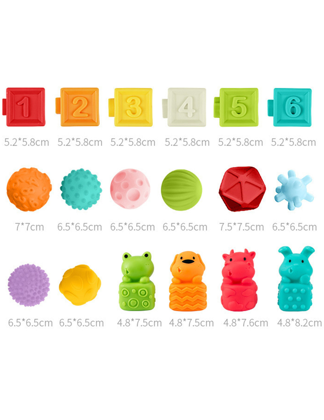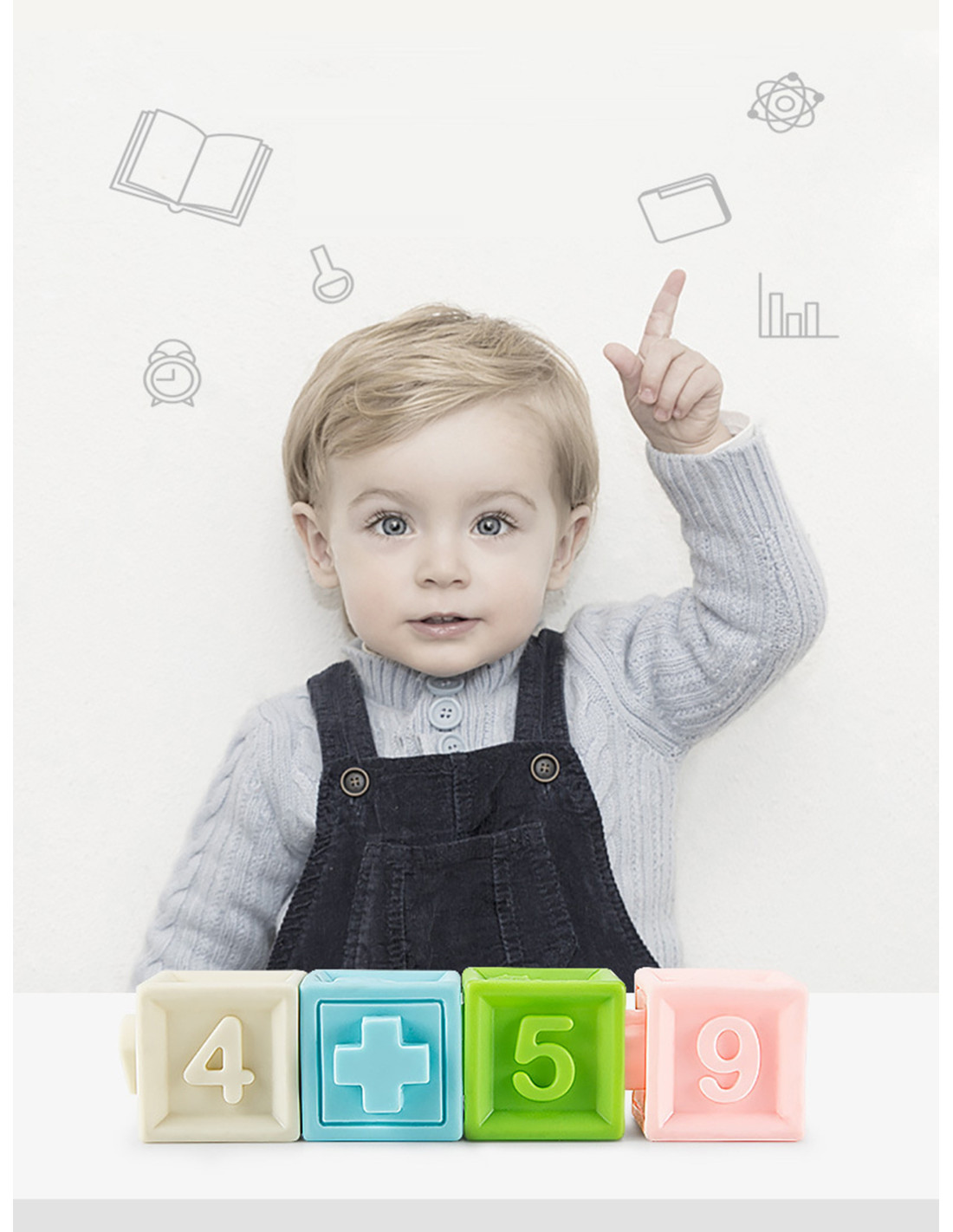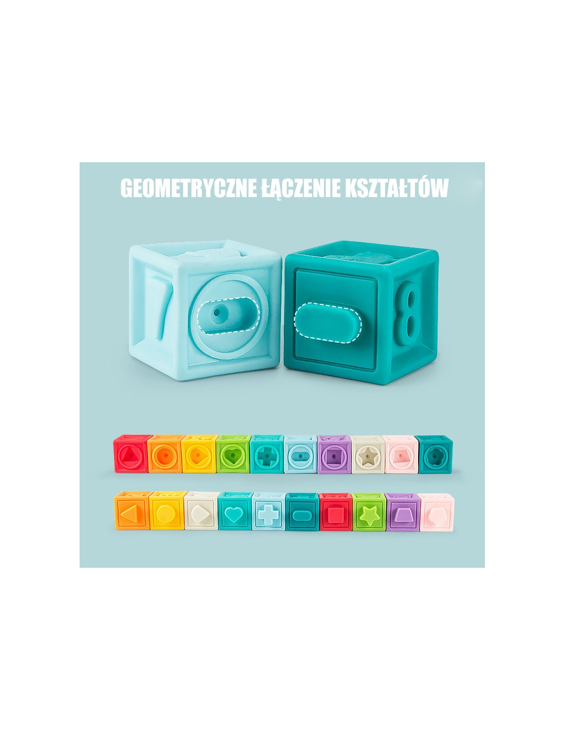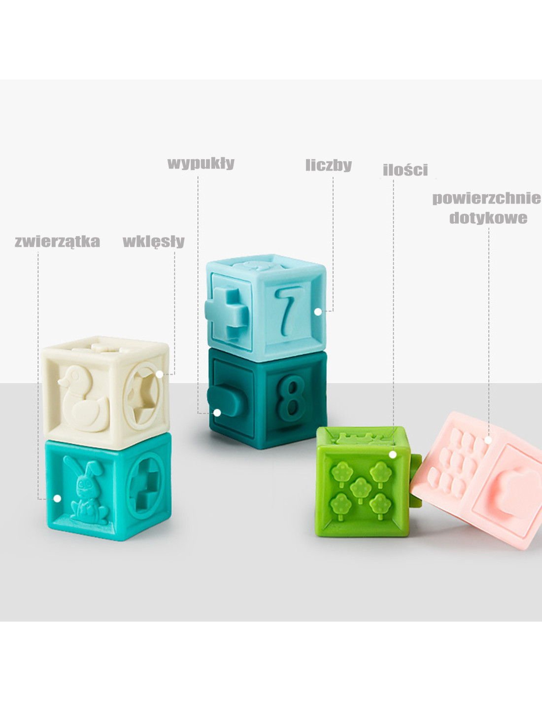 WOOPIE Sensory Puzzle Blocks will captivate every toddler. Their interesting shapes, colors, and ability to make sounds when squeezed perfectly stimulate the development of visual-auditory coordination, fine motor skills , and tactile sense. The blocks feature convex shapes with numbers and mathematical symbols , textures/patterns , animal images , geometric shapes , and fruits . Furthermore, the blocks can be connected . The blocks are soft and pleasant to the touch and make sounds when squeezed. Thanks to their structure, they also work well as teethers . The blocks also have educational value, as they teach counting , thanks to the ability to perform simple mathematical operations. Furthermore, the animal images allow children to become familiar with the natural world. This product, with its beautiful, subdued colors, is suitable for children from 6 months of age.