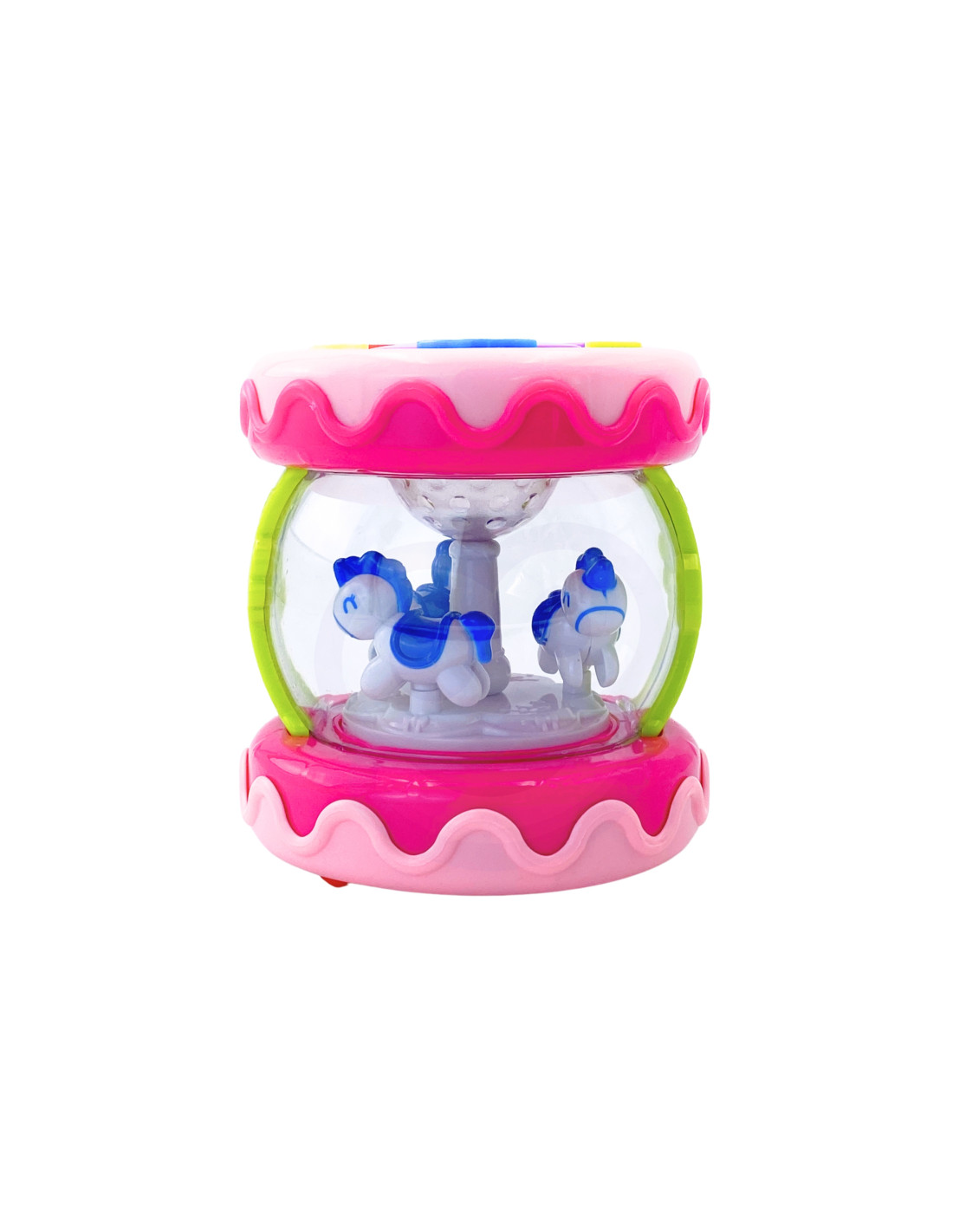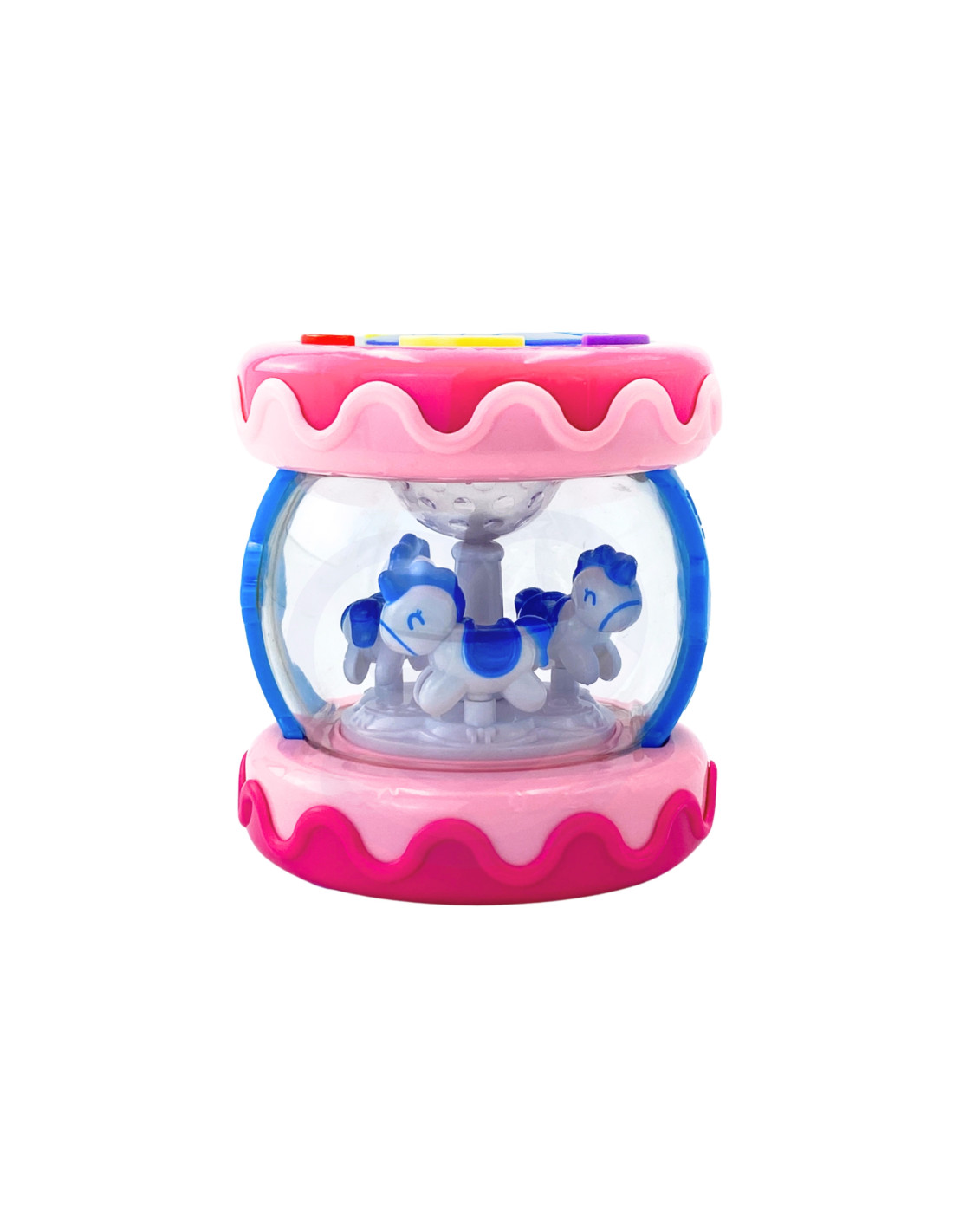 The Musical Drum from WOOPIE is a must-have toy for every child. This toy is primarily designed to develop the senses and also help soothe the baby to sleep. It also functions as a music box with spinning horses inside. It has six sound buttons, including a large drum. Lights flash while playing melodies. At night, the toy acts as a projector – the lights glow and imitate stars. The toy has a sleep mode after 60 seconds without sound. This toy highly develops the child's senses and helps them concentrate for long periods.