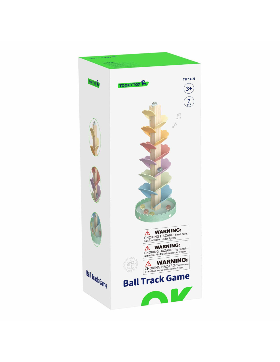 The wooden ball track from Tooky Toy is a spiral tower that provides endless fun. This set consists of 20 colorful pieces that toddlers can easily stack and 6 balls. Release the balls one at a time from the top level and watch them roll one after another. The ball track is great fun and also serves as an excellent educational tool. Children learn the basic laws of physics and logic , and develop their hand-eye coordination. Furthermore, the entire play experience is accompanied by pleasant sounds as the balls fall down the wooden rungs.