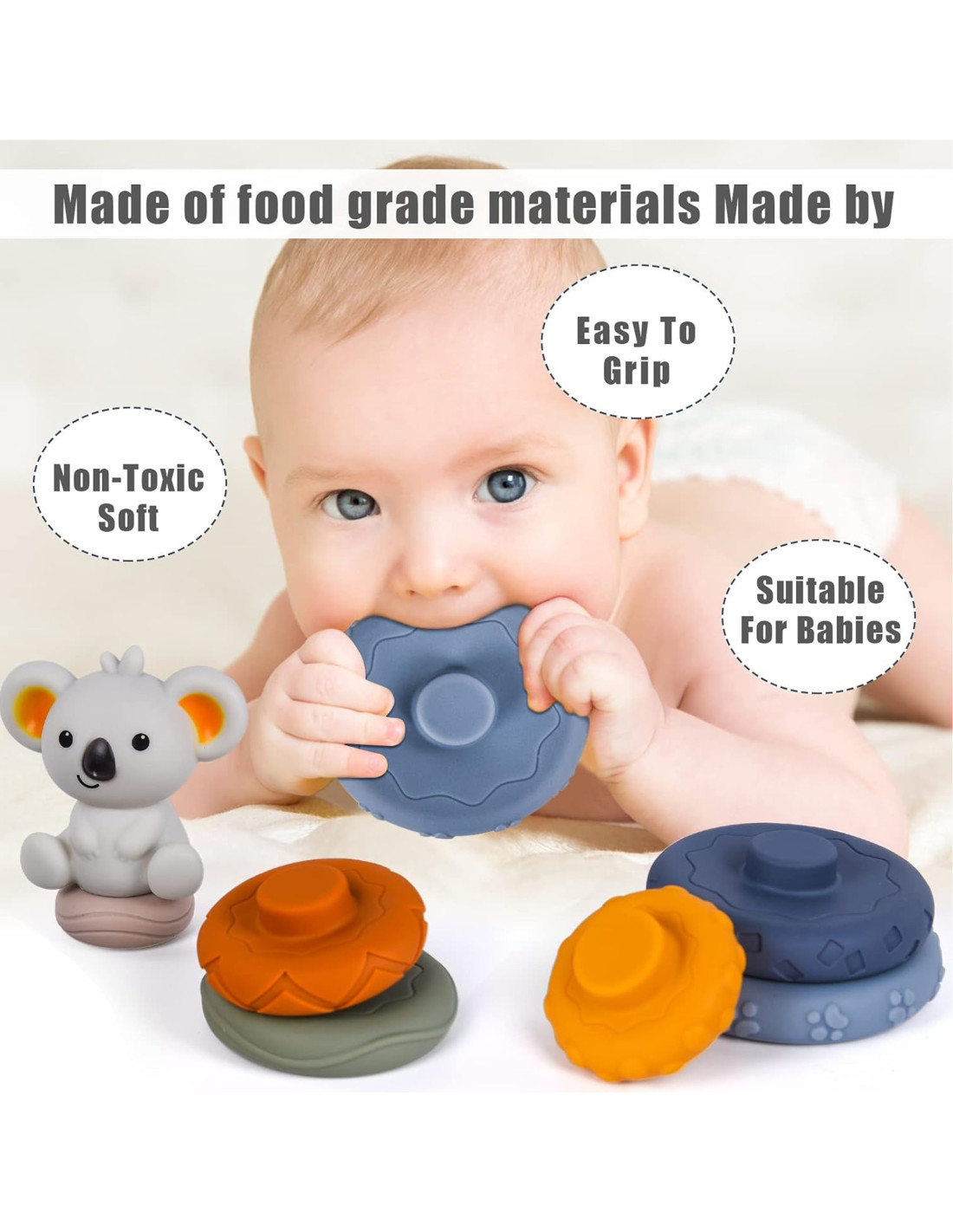 This charming stacking set from WOOPIE is an educational and safe gift idea for any toddler. Made of flexible, soft, and non-toxic material, it also works great as a teether. The pyramid consists of six circles in various sizes, with a cute koala at the top. It's also a sensory toy – each pyramid section has its own unique pattern, either convex or concave. This adds to the fun and excitement. Additionally, children can create stacks based on their imagination or based on the size of the circles . Each element is designed so that the pyramid remains stable once assembled, making storage and play easier.
