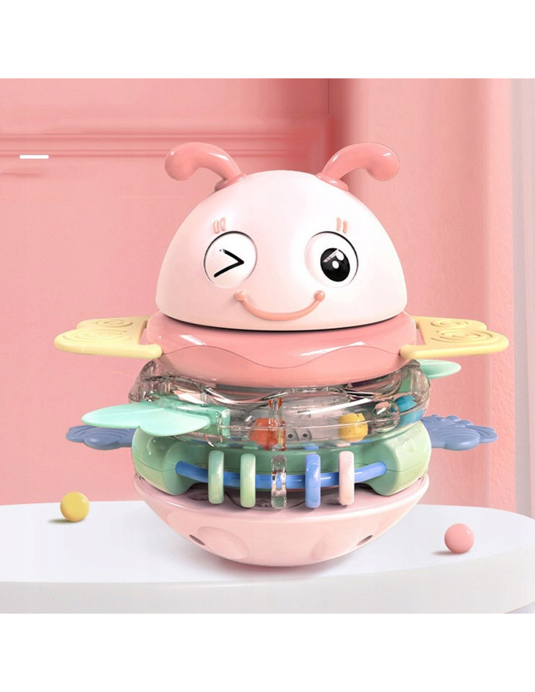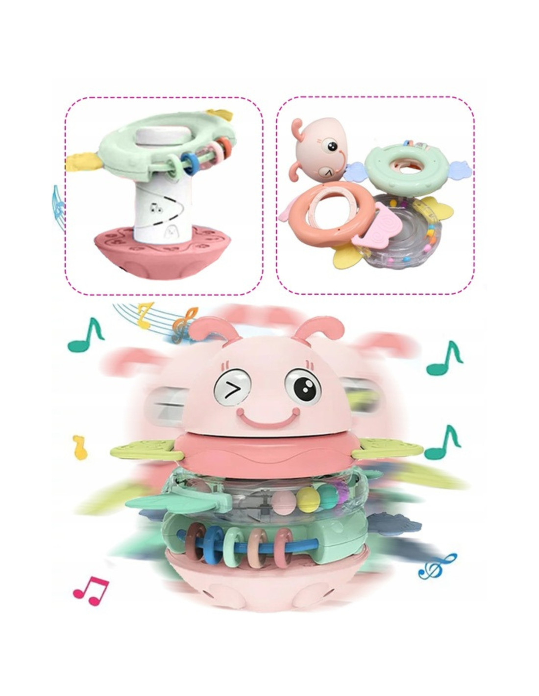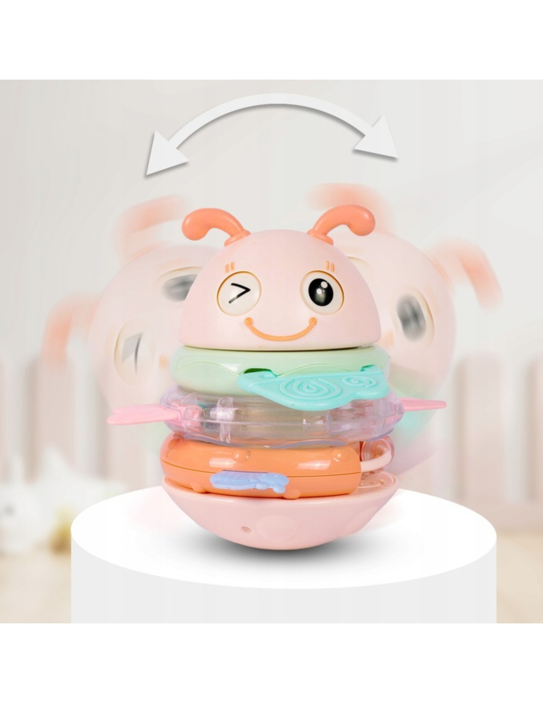 The Woopie 2-in-1 Yellow Bee Tumbler is a multi-tasking sensory toy that delights with both its functionality and appearance! Combining rattles and teethers with sound effects, it provides your little one with versatile play and supports their development from the first months of life. Three colorful rings, which function as both rattles and teethers , can be attached to a special peg, which, depending on the selected mode, will play a song or make a fun sound. The charming bee head with movable eyes completes the look, creating an attractive form that catches baby's eye. This toy was designed with the youngest children in mind. The delicate silicone protrusions on the rings are ideal as teething toys , while the safe, rounded shapes allow for easy grasping and manipulation. All the pieces are colorful, varied in texture, and appropriately sized, stimulating your child's senses, curiosity, and motor skills . Thanks to its rounded base, the toy rocks gently with movement, and it's not easy to tip it over! It's not just a toy, but a companion for everyday learning and development .