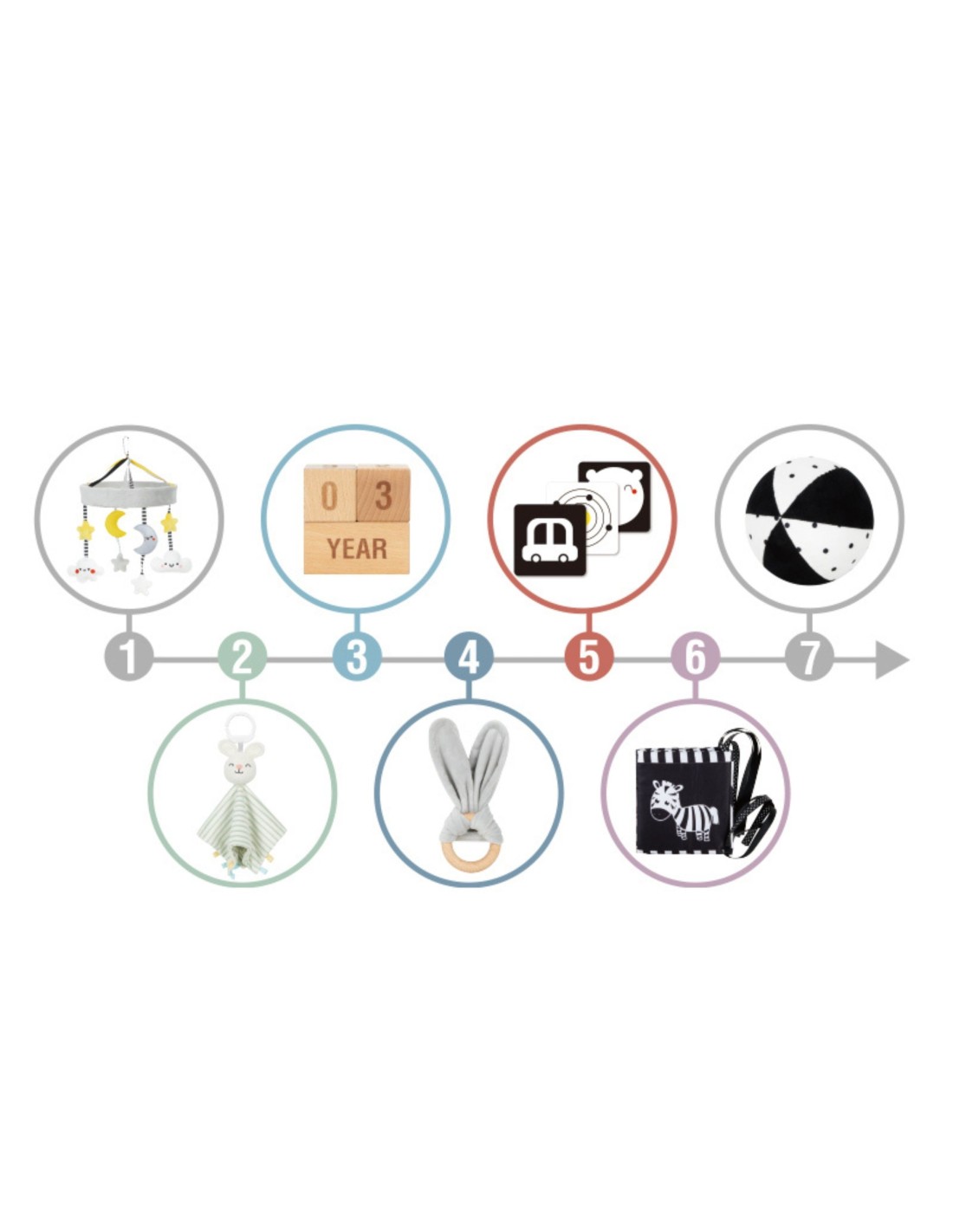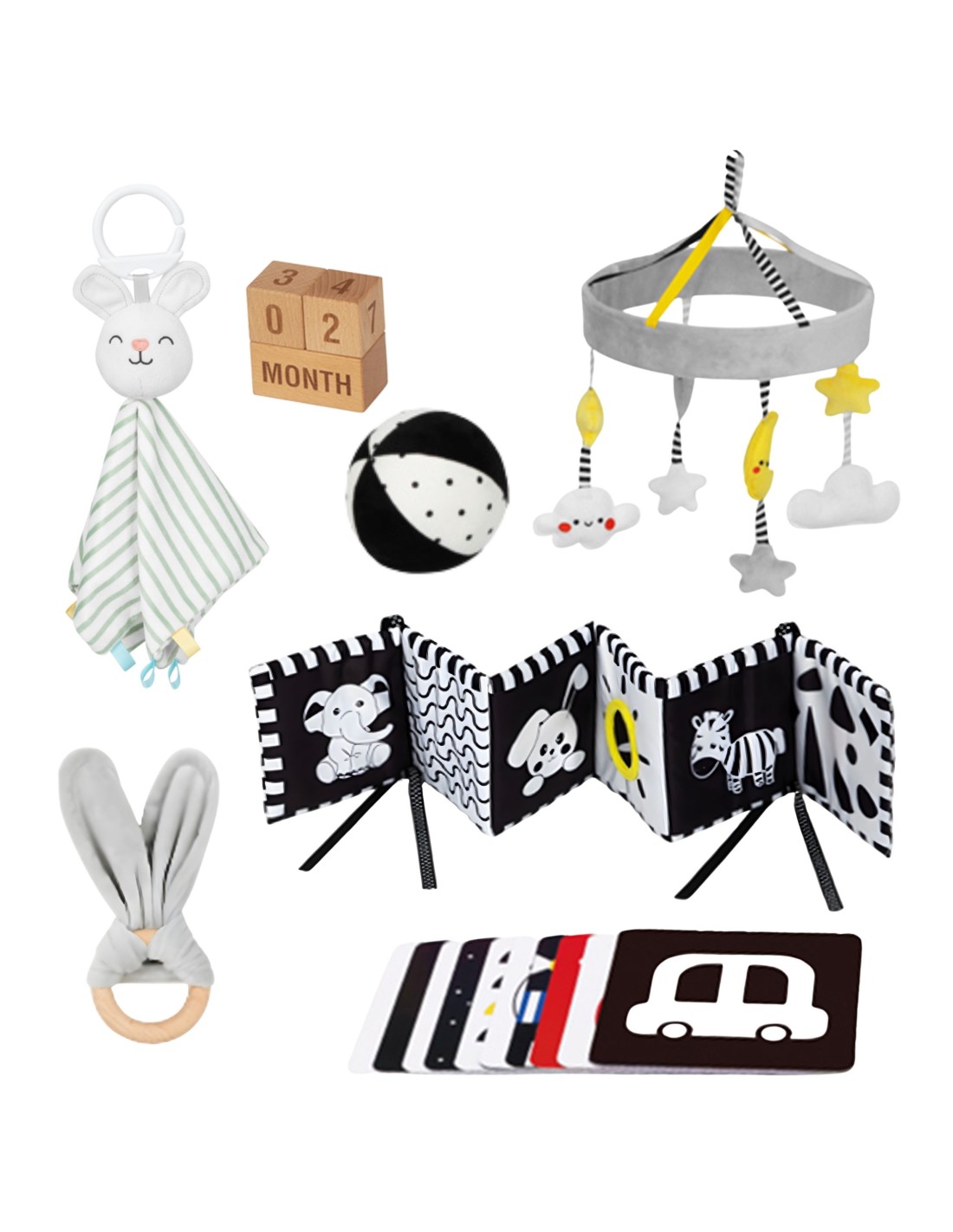 - - Contrast plush ball – exercises gripping, vision and motor skills while lying on the tummy.