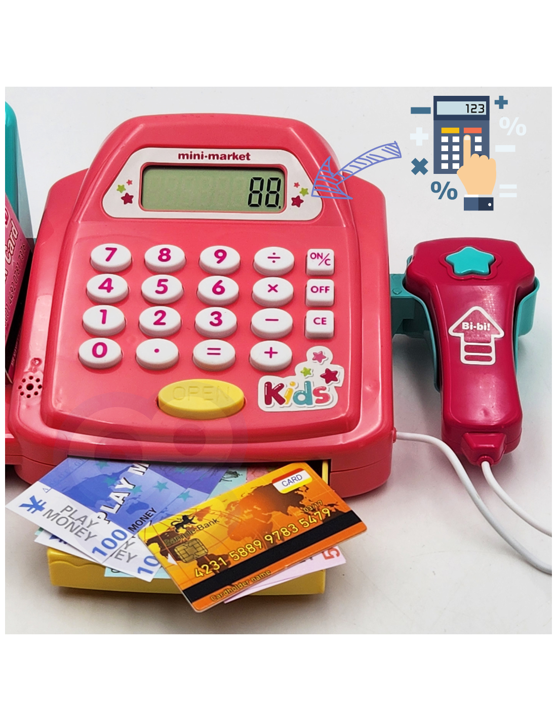 - - The practical cash drawer slides out like in a real cash register, which adds extra fun to every transaction