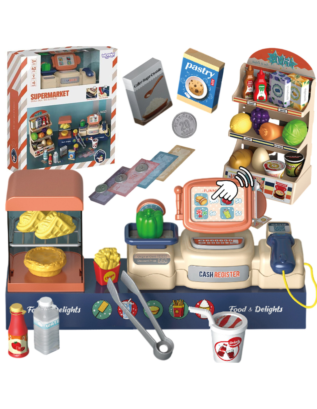The Supermarket Store from WOOPIE is great fun for little shoppers! Kids can serve customers, weigh products, and use the scanner. Playing shop helps develop creativity, imagination, manual skills, and independent thinking. It's a perfect way to shop together and have loads of fun!