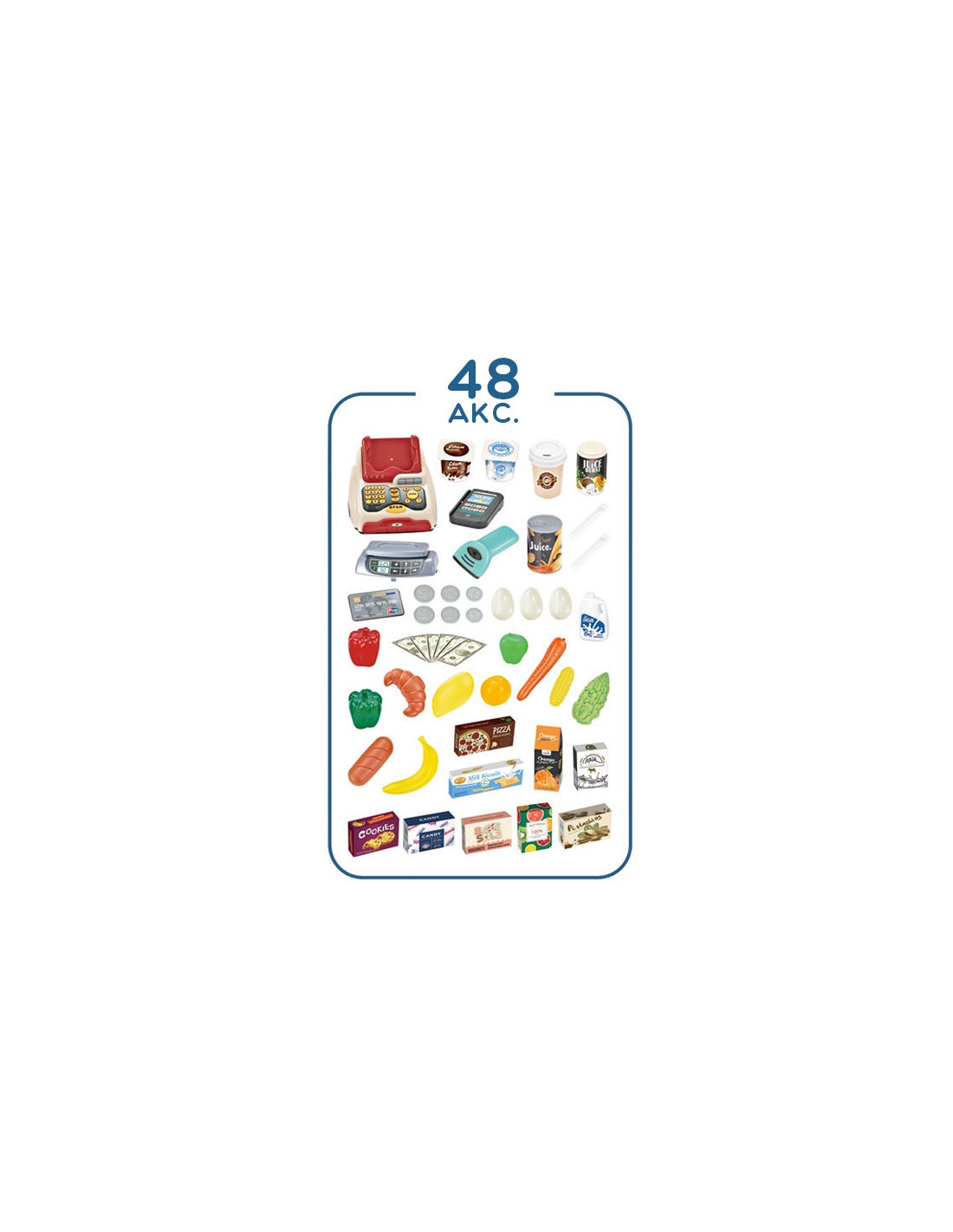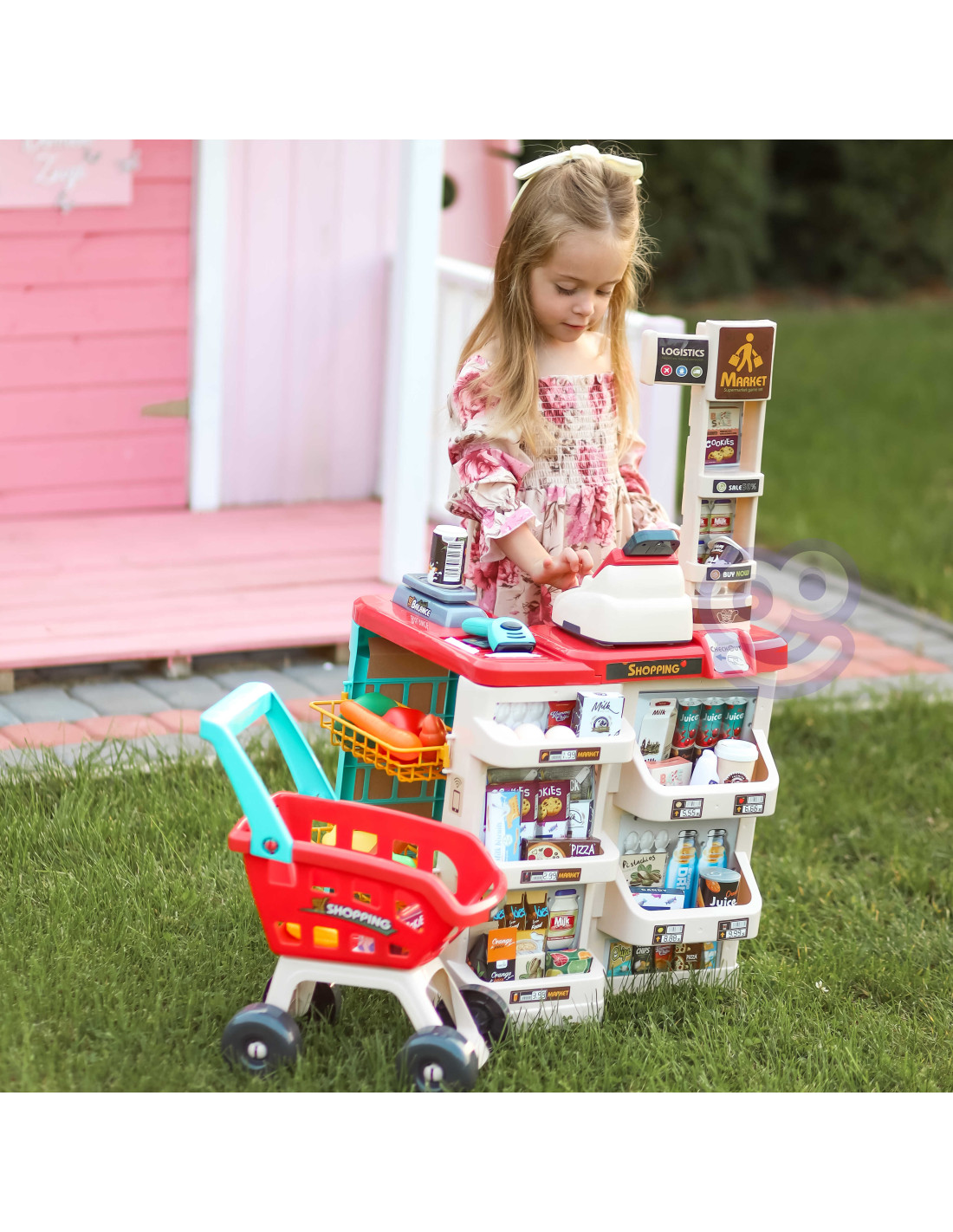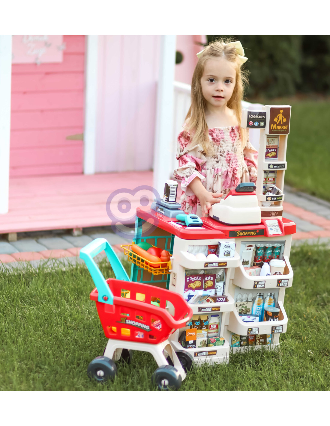 A supermarket with a shopping cart and many additional accessories , from the Woopie brand. This is an ideal idea for children over 3 years old . Children love to imitate their parents in their daily routines , so this is the perfect set for your child and an additional opportunity for your child to not only have fun but also learn something (role-playing is incredibly stimulating for toddlers' imagination and creativity ). The shop includes all the necessary elements to equip a small shopkeeper's workstation, including a cash register with a terminal, a scale, a scanner, a payment card , and numerous groceries. The included shopping cart allows them to play with friends no matter where or when!