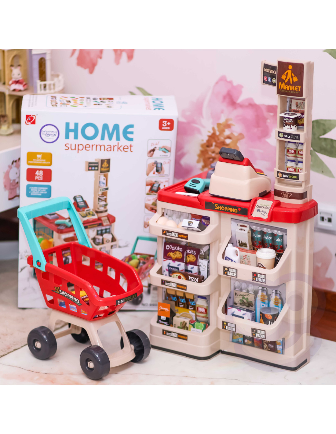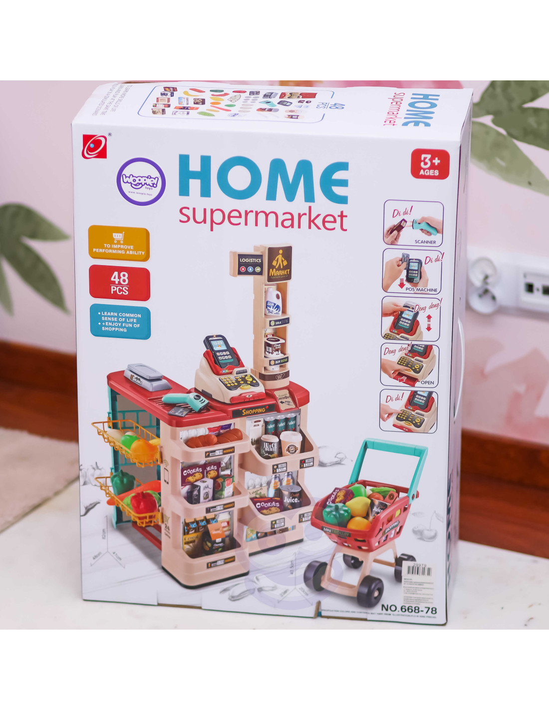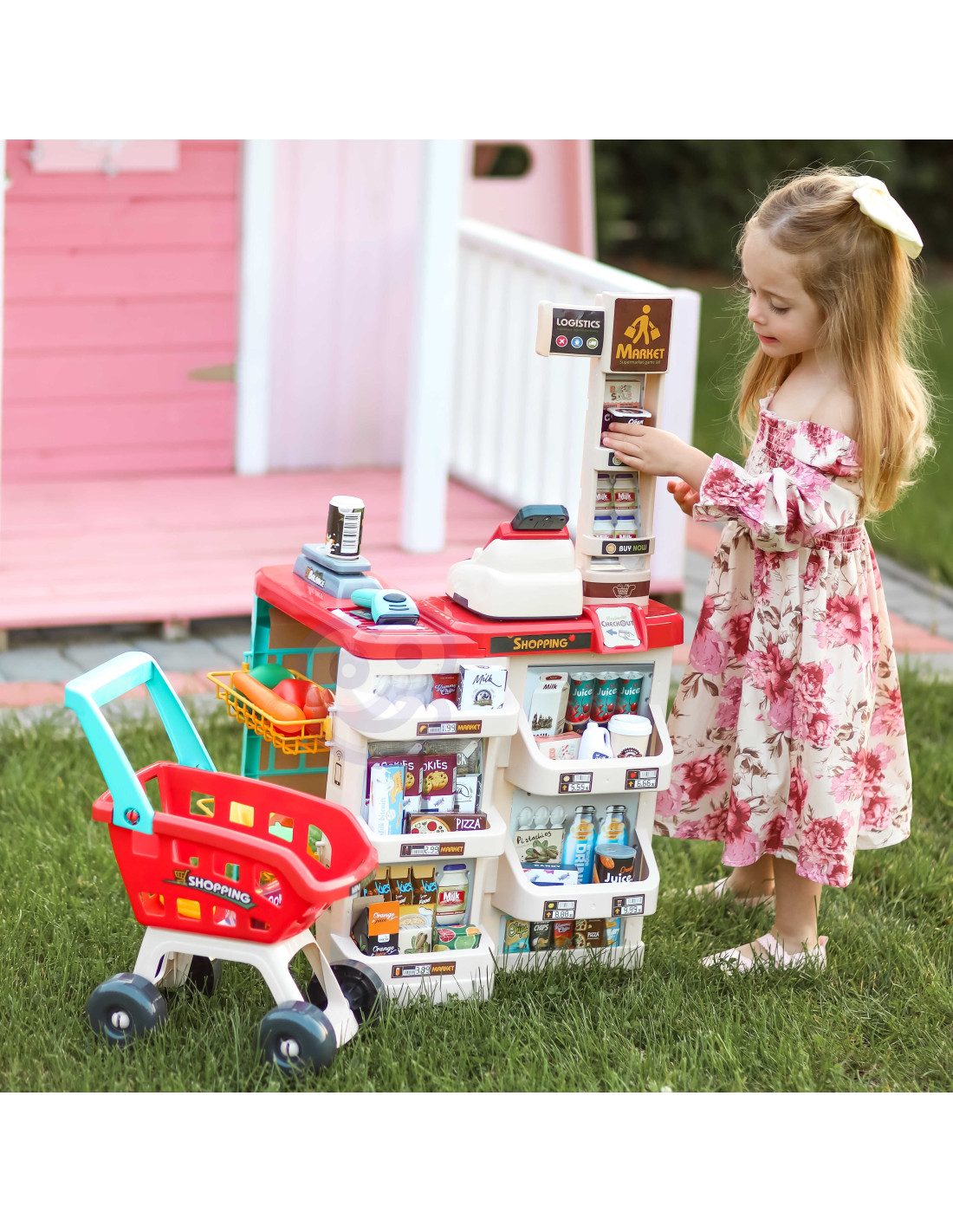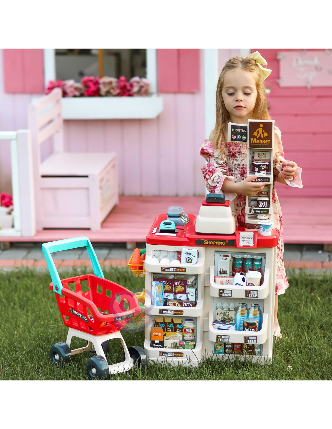 A supermarket with a shopping cart and many additional accessories , from the Woopie brand. This is an ideal idea for children over 3 years old . Children love to imitate their parents in their daily routines , so this is the perfect set for your child and an additional opportunity for your child to not only have fun but also learn something (role-playing is incredibly stimulating for toddlers' imagination and creativity ). The shop includes all the necessary elements to equip a small shopkeeper's workstation, including a cash register with a terminal, a scale, a scanner, a payment card , and numerous groceries. The included shopping cart allows them to play with friends no matter where or when!