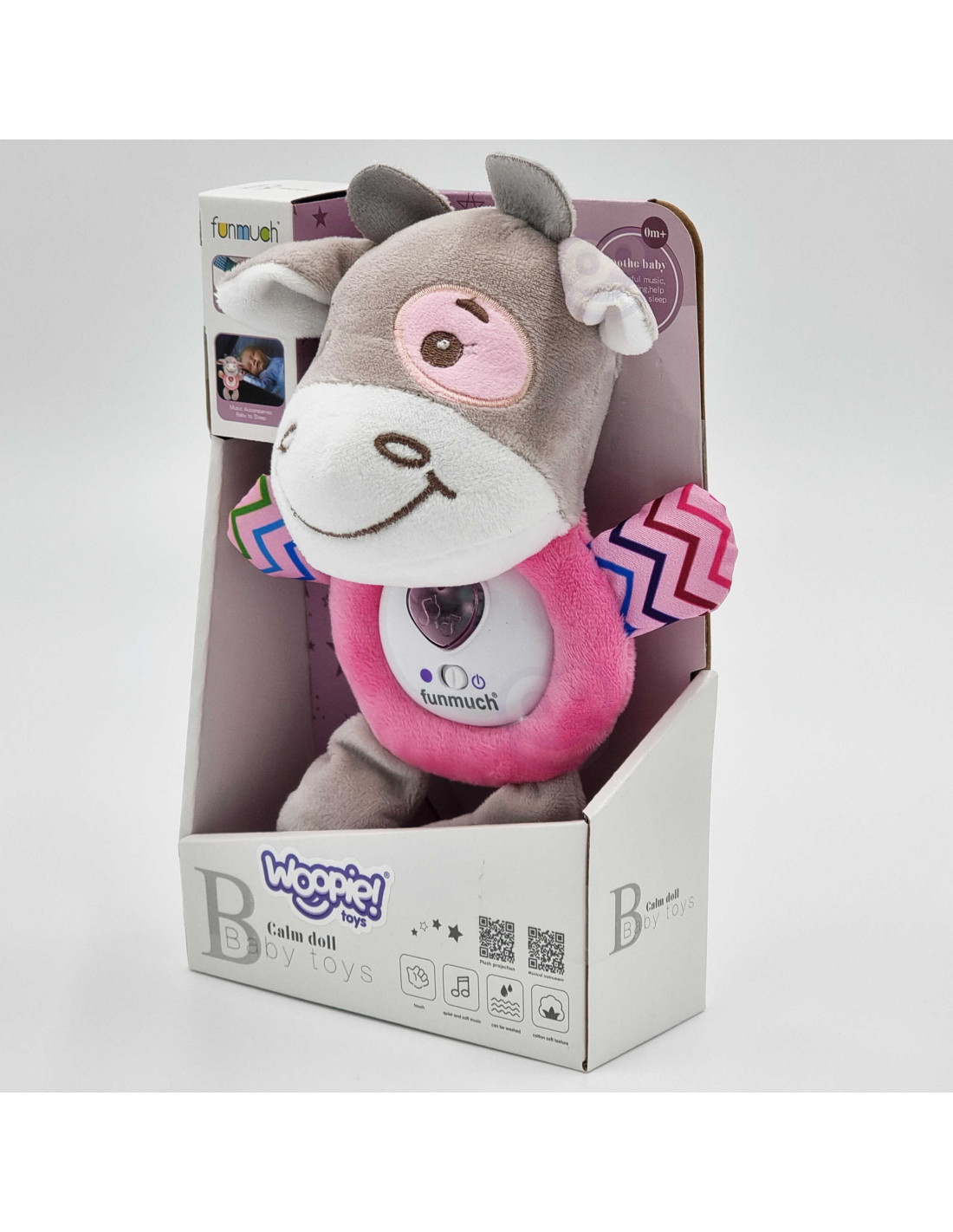 The interactive plush bull will soothe and lull your child to sleep. The toy features a lullaby function and colorful light display, ensuring your little one doesn't get bored with the toy. This soft-touch teddy bear will become your child's friend from a very young age. Suitable for infants, the toy is soft and filled with cotton wool, so you don't have to worry about your little one injuring themselves. Furthermore, the plush toy can be safely and easily cleaned ( by removing the mechanism ) without fear of damage.