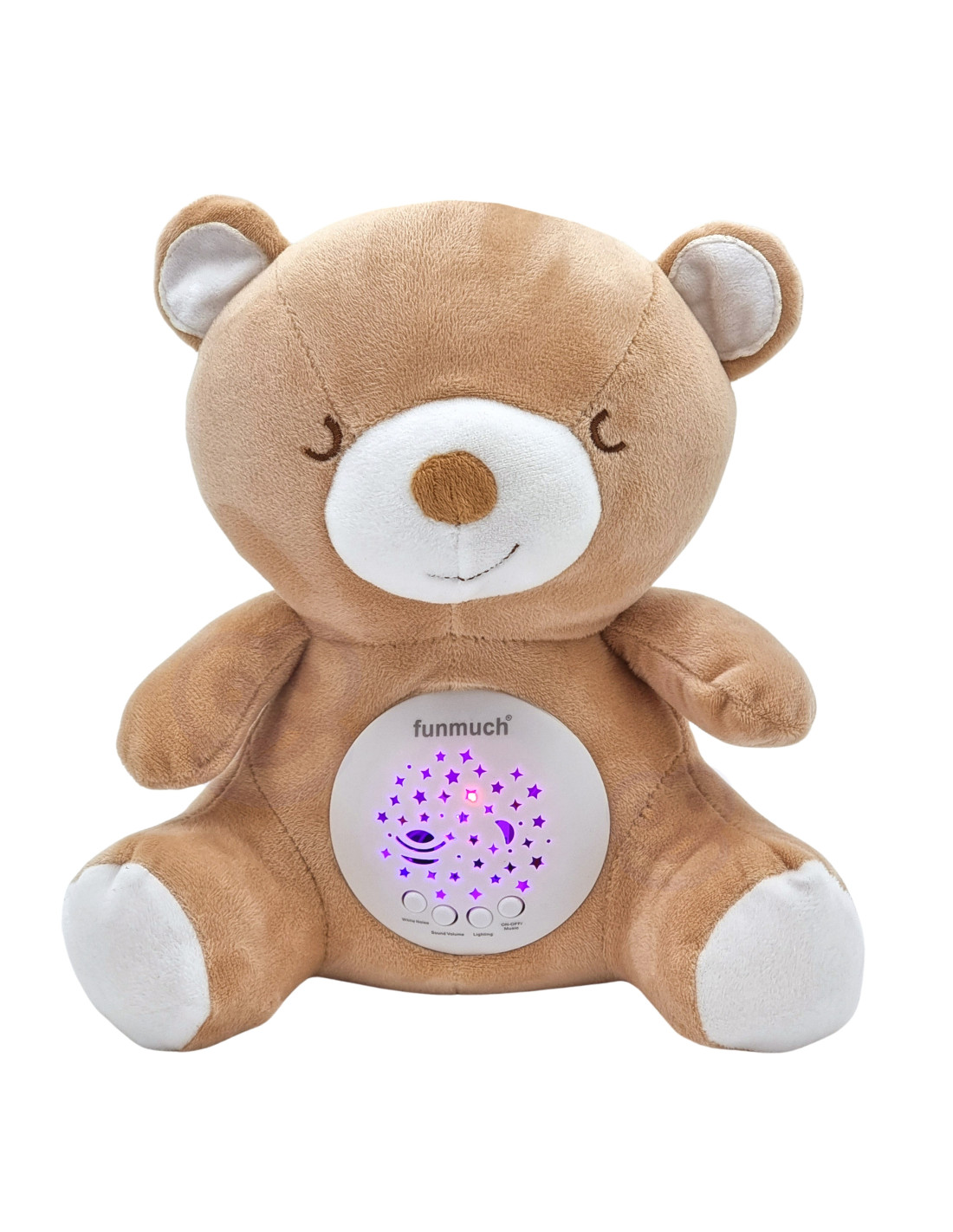 Pluszowy Usypiacz Miś od marki Woopie, będzie uroczym towarzyszem snu Twojego maluszka. Maskotka jest idealna dla niemowląt i starszych dzieci, które nie lubią same zasypiać. Misio będzie idealnym przyjacielem dobrych snów i wybawcą od potworów z szafy. Przytulanka posiada 4 funkcje. Gdy ją włączymy usłyszymy melodie, a brzuszek zacznie mienić się różnymi kolorami. Po naciśnięciu przycisku " White Nose" usłyszymy różne szumy czy bicie serduszka. Zabawka posiada, również aż 10 różnych kołysanek oraz możliwość ustawienia 3 poziomów głośności, aby móc dostosować dźwięk do upodobań maluszka i mieć pewność, że nie obudzi się podczas snu. Zabawka jest przystosowana dla niemowląt, dlatego jest wypełniona miękką watą. Dodatkowo pluszaka można bezpiecznie oraz łatwo czyścić, wyjmując mechanizm i łatwo go potem montując. Dzięki temu również starsze dziecko będzie mogło używać zabawki jako maskotki bez mechanizmu. Każde dziecko zakocha się w misiu!