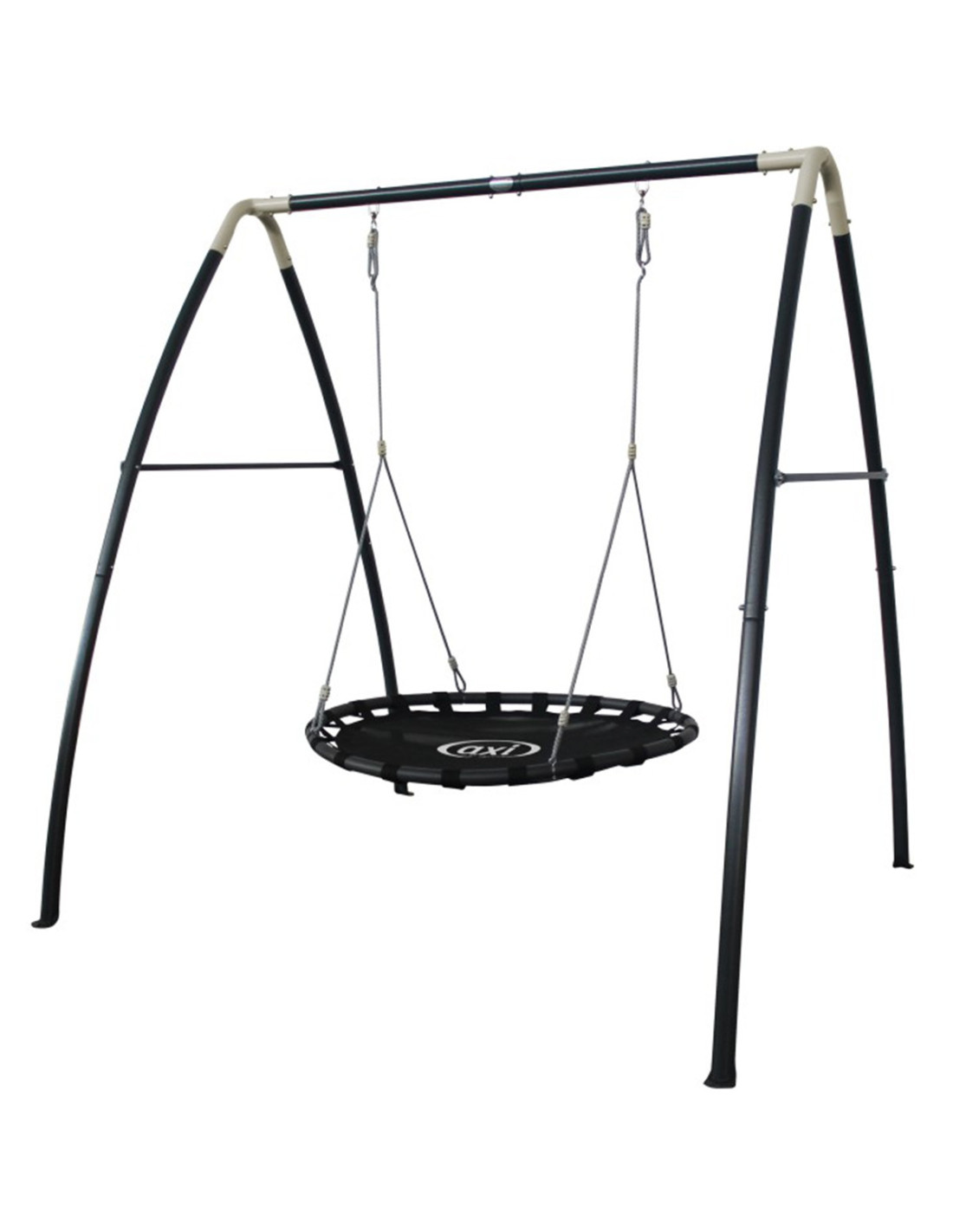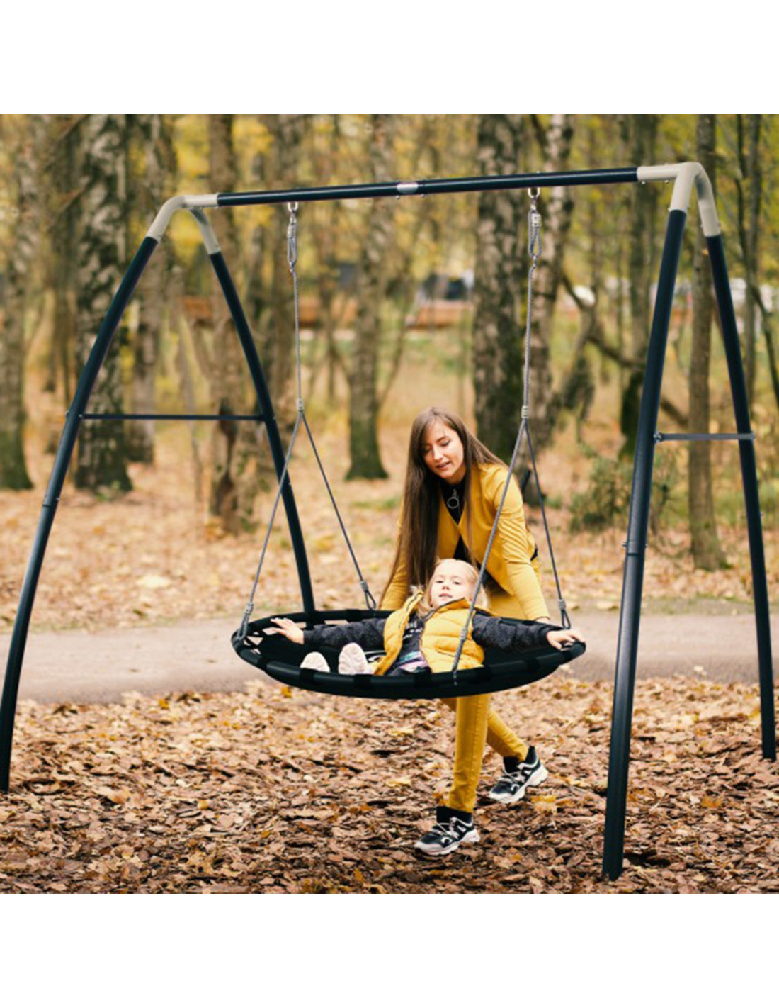 ✔ Solidna huśtawka z siedziskiem typu gniazdo (Ø 120 cm) wykonana z wodoodpornego materiału i stali malowanej proszkowo