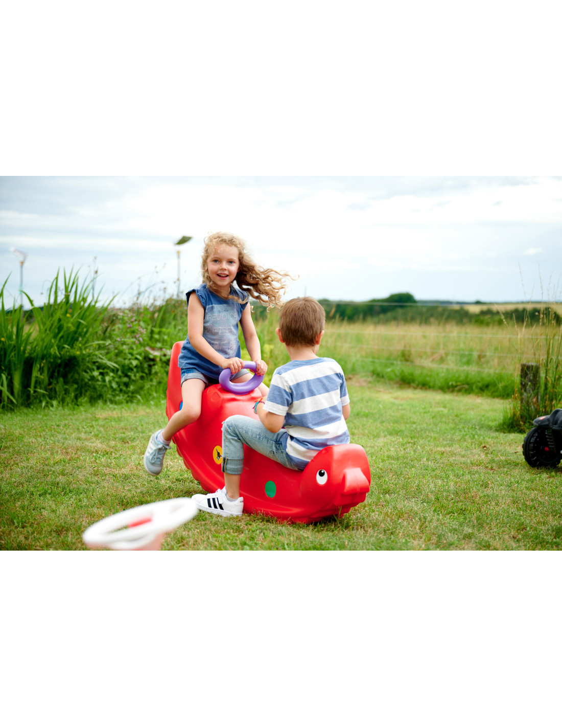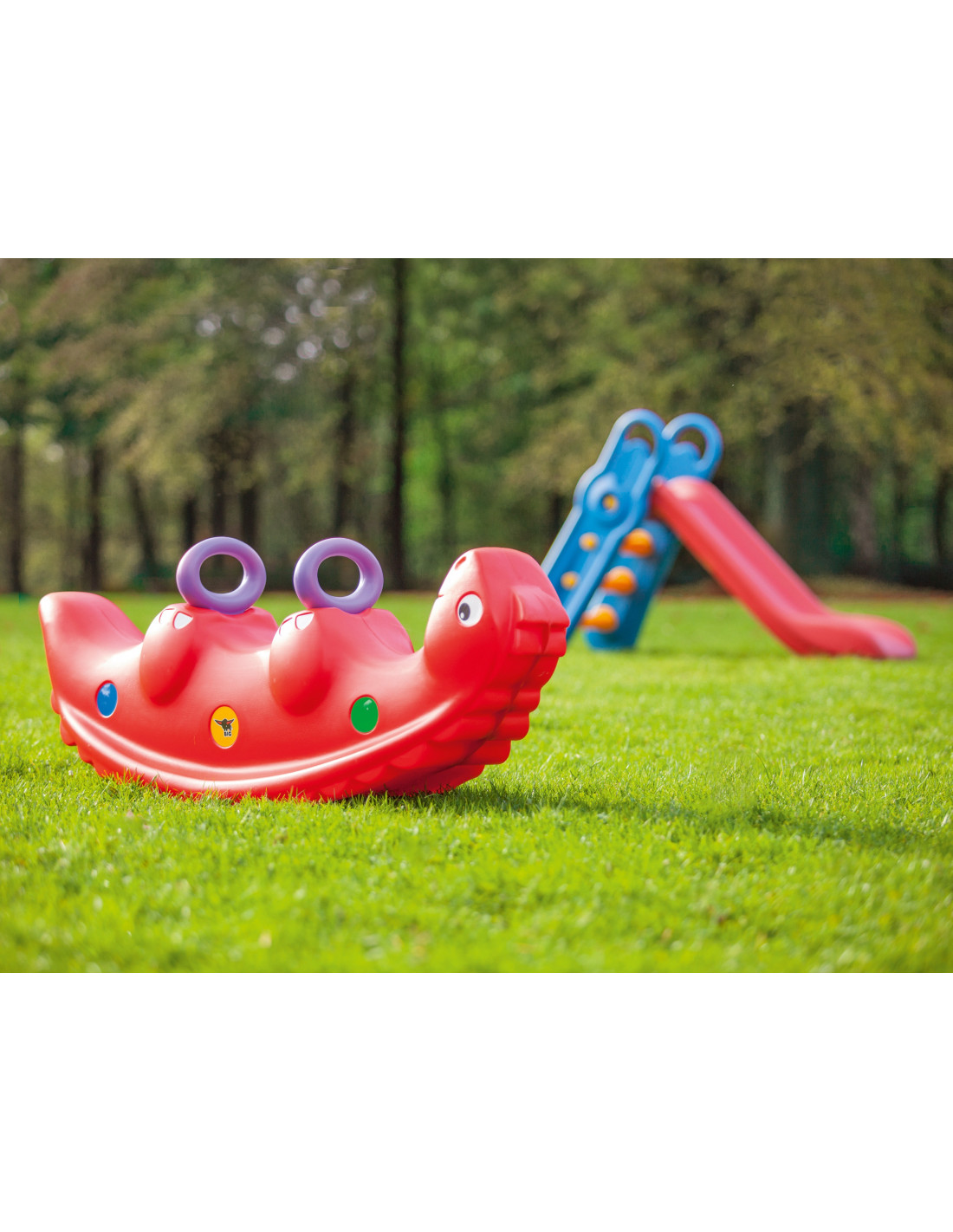 Bujak Wieloosobowy Dinozaur marki BIG jest prawdziwą gwiazdą wśród dzieci! Z bujaka może korzystać maksymalnie troje dzieci jednocześnie, a nawet jedno będzie się świetnie bawić. Gdy dzieci bujają się we dwójkę to dodatkowo rozwija u nich zdolności do współpracy. Solidne uchwyty zapewnią bezpieczeństwo a łuski na grzbiecie dinozaura zapobiegną zbyt gwałtownemu kołysaniu. Bujanie samo w sobie uspokaja dziecko oraz rozwija zdolności motoryczne ciała, co jest idealne dla prawidłowego rozwoju. Z huśtawki można korzystać zarówno w domu jak, i na zewnątrz!