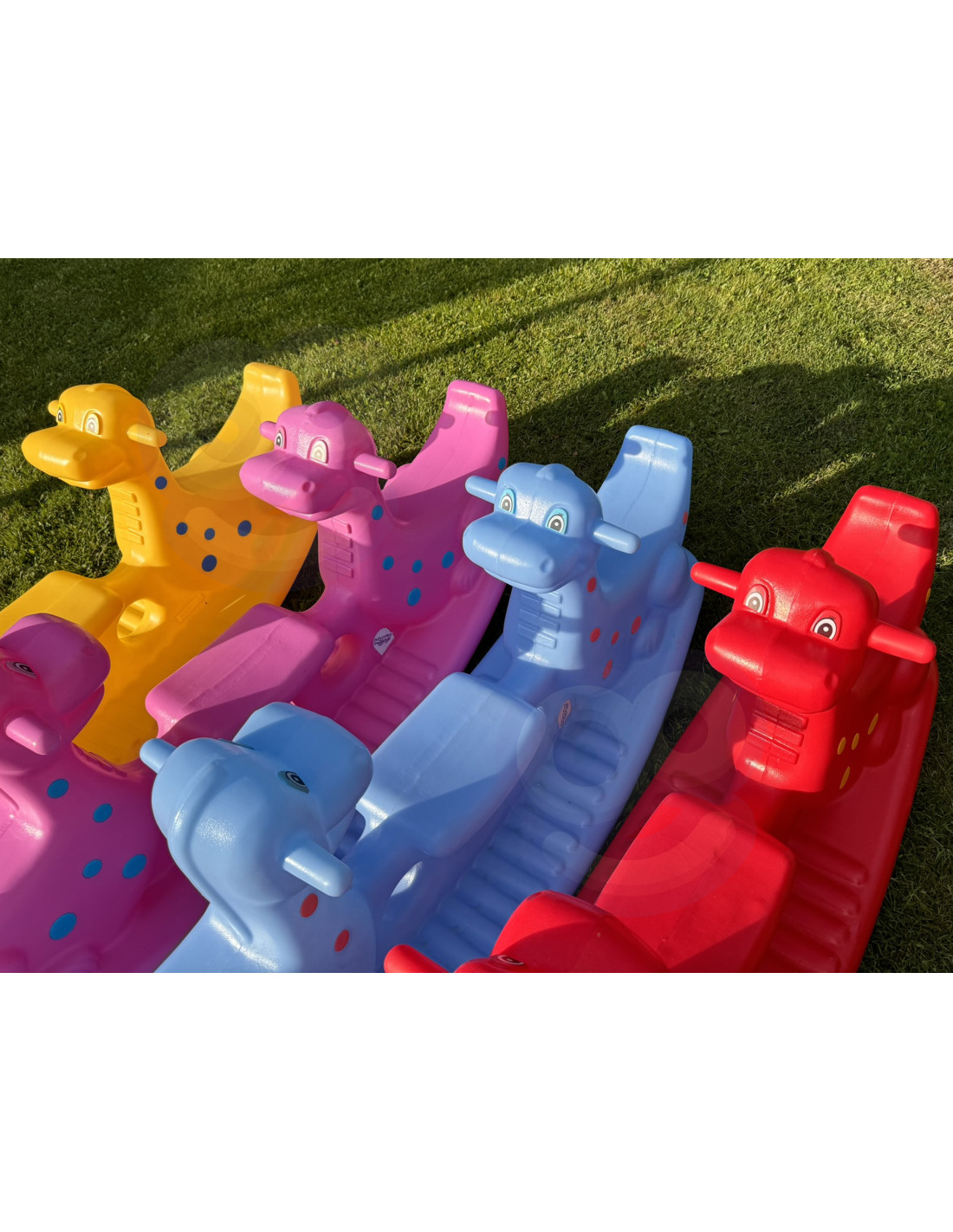 The Woopie Blue Dino Multi-Person Rocker will become your child's favorite dinosaur! Three children can use the rocker at once, and even one will have a blast! When two children rock simultaneously, the Dino can function as a balance swing, allowing children to work together and swing endlessly. The rocker itself offers many benefits for children: rocking calms the child and develops fine motor skills , which is ideal for healthy development . Furthermore, dinosaurs can stimulate your child's imagination and creativity . They might even treat it like a friend they'll care for. The product can be used both indoors and outdoors !