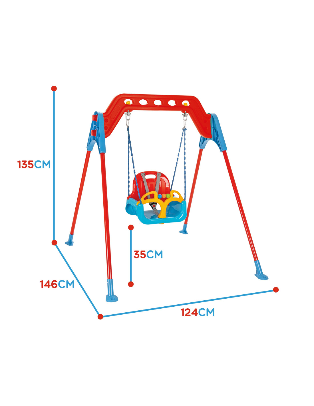 Huśtawka 3w1 marki Woopie zapewni świetną zabawę już od najmłodszych lat! Huśtawka pojedyncza posiada stabilne, masywne oraz wytrzymałe stanowisko z zabezpieczeniami na "nogi". Dzięki konstrukcji huśtawka może być używana zarówno w domu, jak i na zewnątrz. Dzięki zdejmowanej osłonie na nóżki i zdejmowanemu oparciu huśtawka będzie idealna również dla starszych dzieci. Produkt ma 3 opcje użycia: huśtawka dla dziecka z oparciem i osłoną na nóżki, huśtawka z oparciem lub huśtawka bez oparcia. Z biegiem czasu gdy dziecko rośnie, części huśtawki można w łatwy sposób demontować - huśtawka rośnie razem z dzieckiem! Pasy bezpieczeństwa zapewnią bezpieczną zabawę, a ruchowe elementy rozwijają "ruch rączki". Odległość siedziska do podłoża to 35 cm. Huśtanie pozytywnie wpływa na rozwój motoryki dziecka oraz jest idealną zabawką do aktywności!