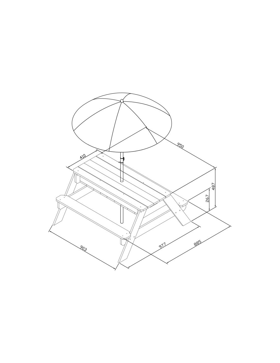 - - height-adjustable umbrella included (110 - 175 cm),