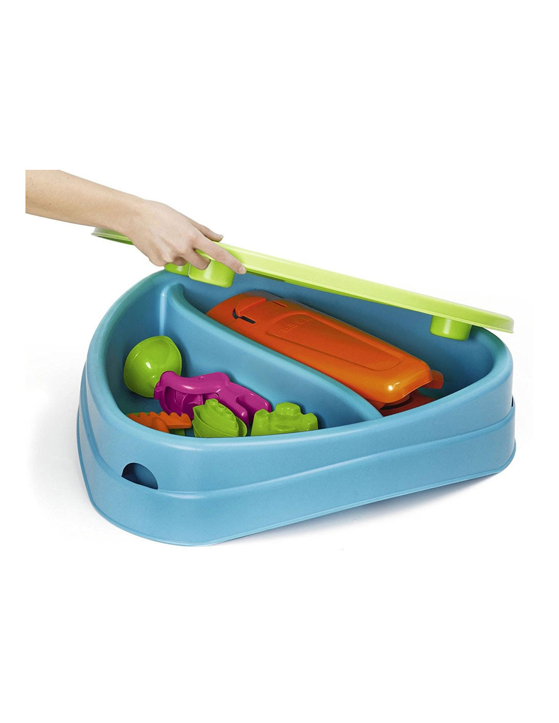 The FEBER 4-in-1 Water Table with Cover, Sandbox, Desk, and Picnic Table with accessories from the renowned Feber company is an essential element of any playground, both at home and in public spaces. The table has two compartments for pouring sand or water. Additionally, children will find a mill in the center of the table, making play even more engaging. Designed with the youngest children in mind, the table has rounded edges. With the cover on, the set can be used as a drawing table, featuring recesses for crayons, for example. Feber sandboxes are made of high-quality materials with attention to the smallest details. The plastic is UV-coated to preserve the color quality for a long time. The sandboxes can be combined with other playgrounds or garden houses, creating a unique space for children to play.