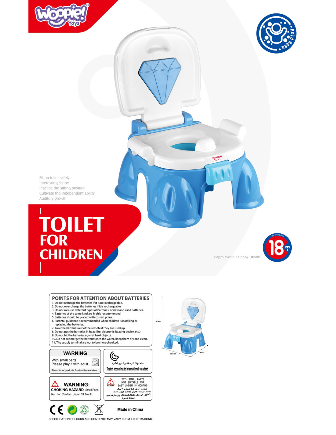 Śpiewający Nocniczek od marki WOOPIE przyspieszy u dziecka naukę samodzielnego załatwiania swych potrzeb! Nocniczek jest idealny dla dziecka przez swoje szerokie i ergonomiczne siedzisko, uchwyty z boku oraz stabilną podstawę. Czas dziecku umilą wbudowane melodie, które można włączyć i wyłączyć w każdej chwili. Jest zaprojektowany z myślą o rodzicach, ponieważ opróżnienie zajmuje parę chwil!. Złożony nocnik można używać, również jako krzesełko lub podest do umywalki. Produkt najwyższej jakości wykonany z najlepszych bezpiecznych materiałów.