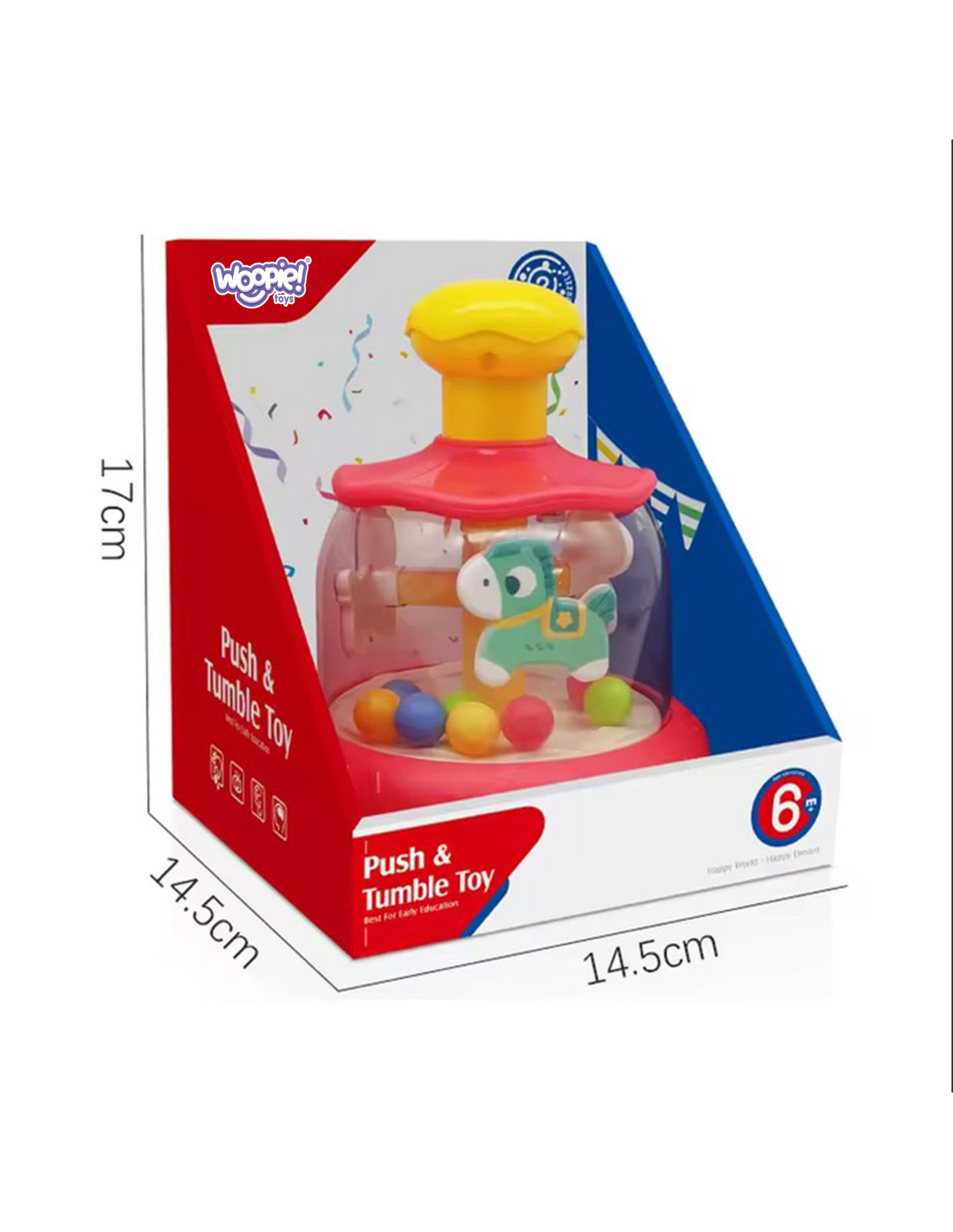 Let your child discover the world through play with the wonderful " Twirly Top " toy! This innovative and colorful toy was created with the youngest explorers in mind, providing not only tons of fun but also supporting their development in key areas. Thanks to its sturdy construction and vibrant colors , the toy captures the child's attention while supporting the development of their motor, sensory, and cognitive skills. It's the perfect choice for any parent who wants their little one to develop in an atmosphere of fun and joy. Just press the top yellow part of the carousel, and the horse and balls will begin to move throughout the carousel.