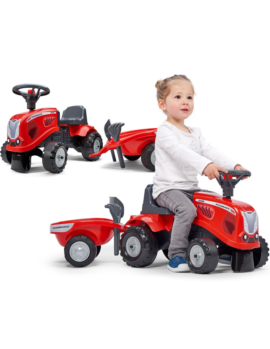 FALK Baby Mac Cormick Red Tractor with Trailer + accessories from 1 year