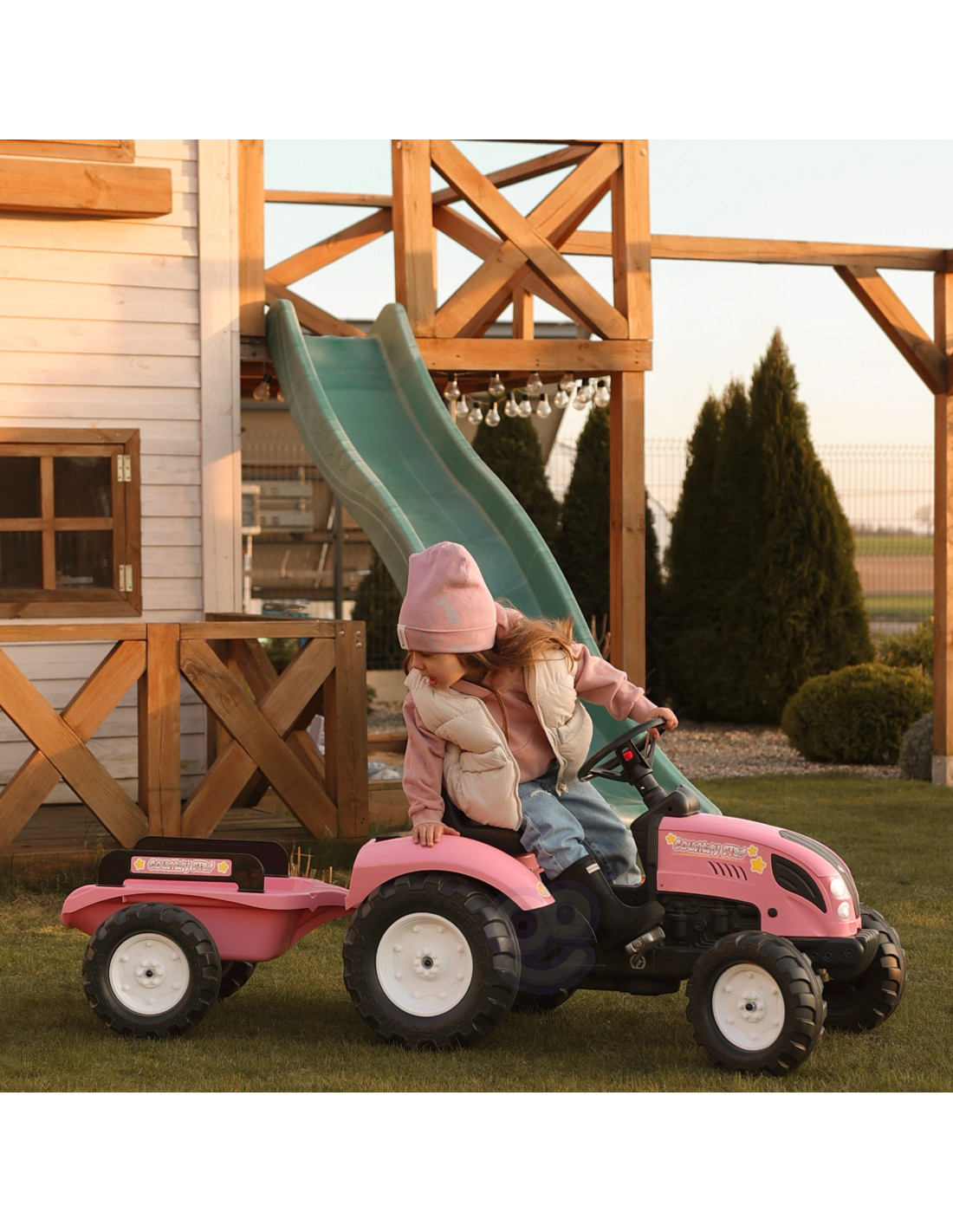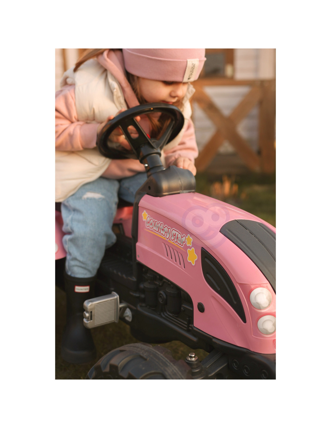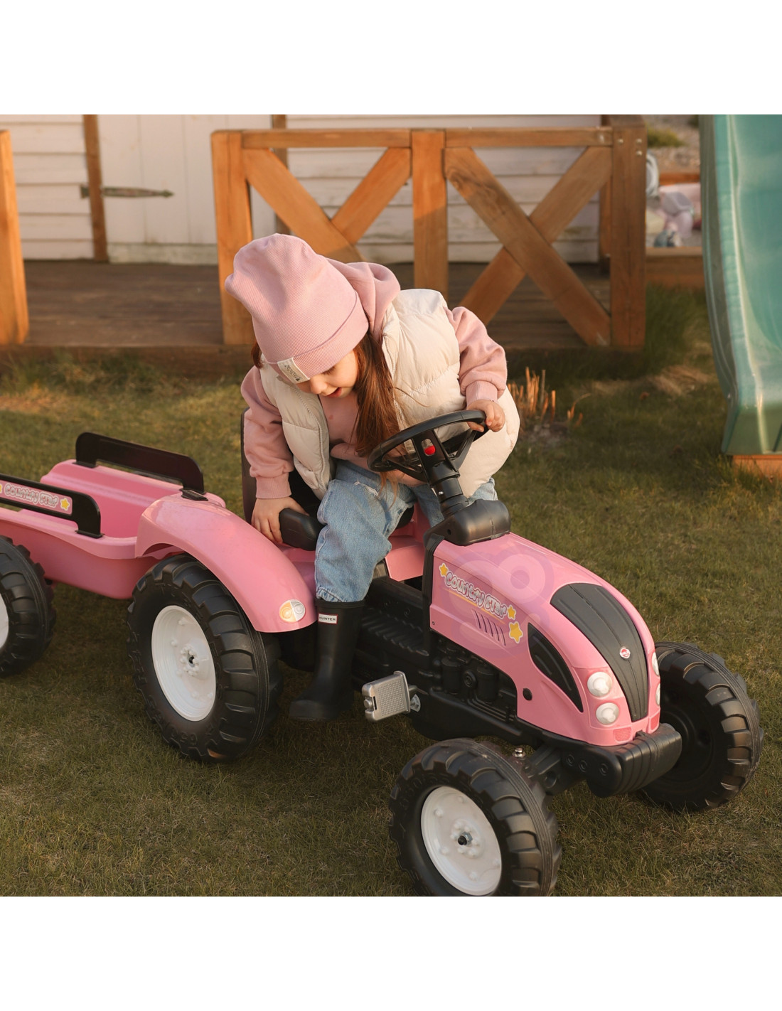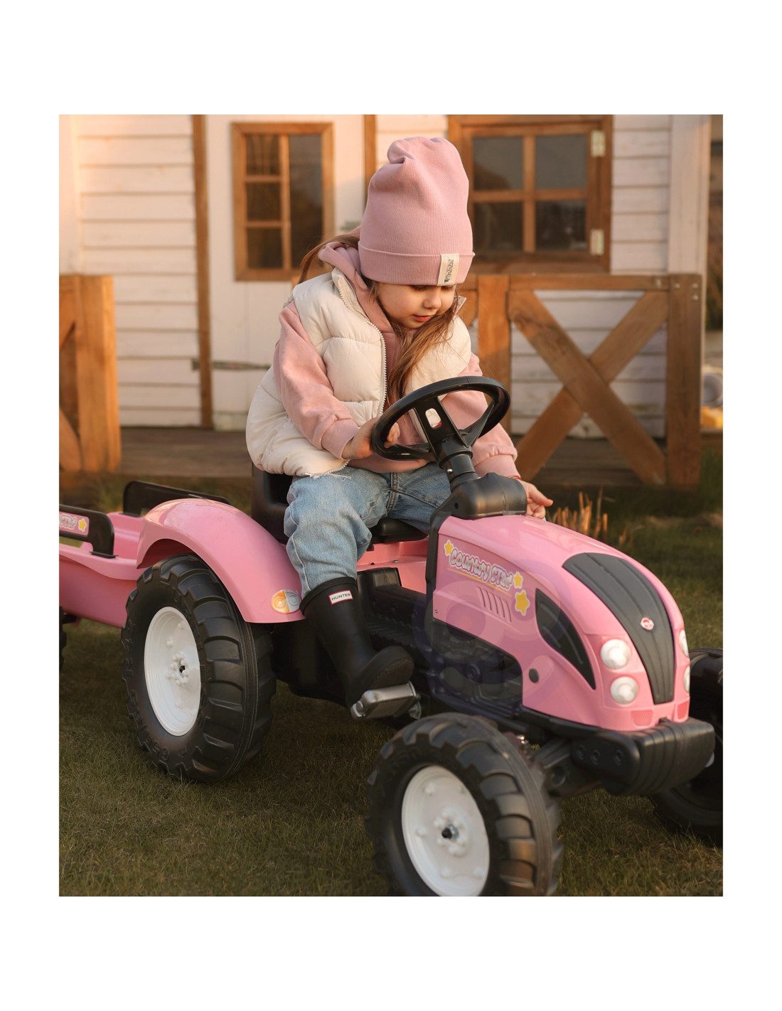 FALK Country Star Pink Pedal Tractor + Trailer and Horn from 2 Years.