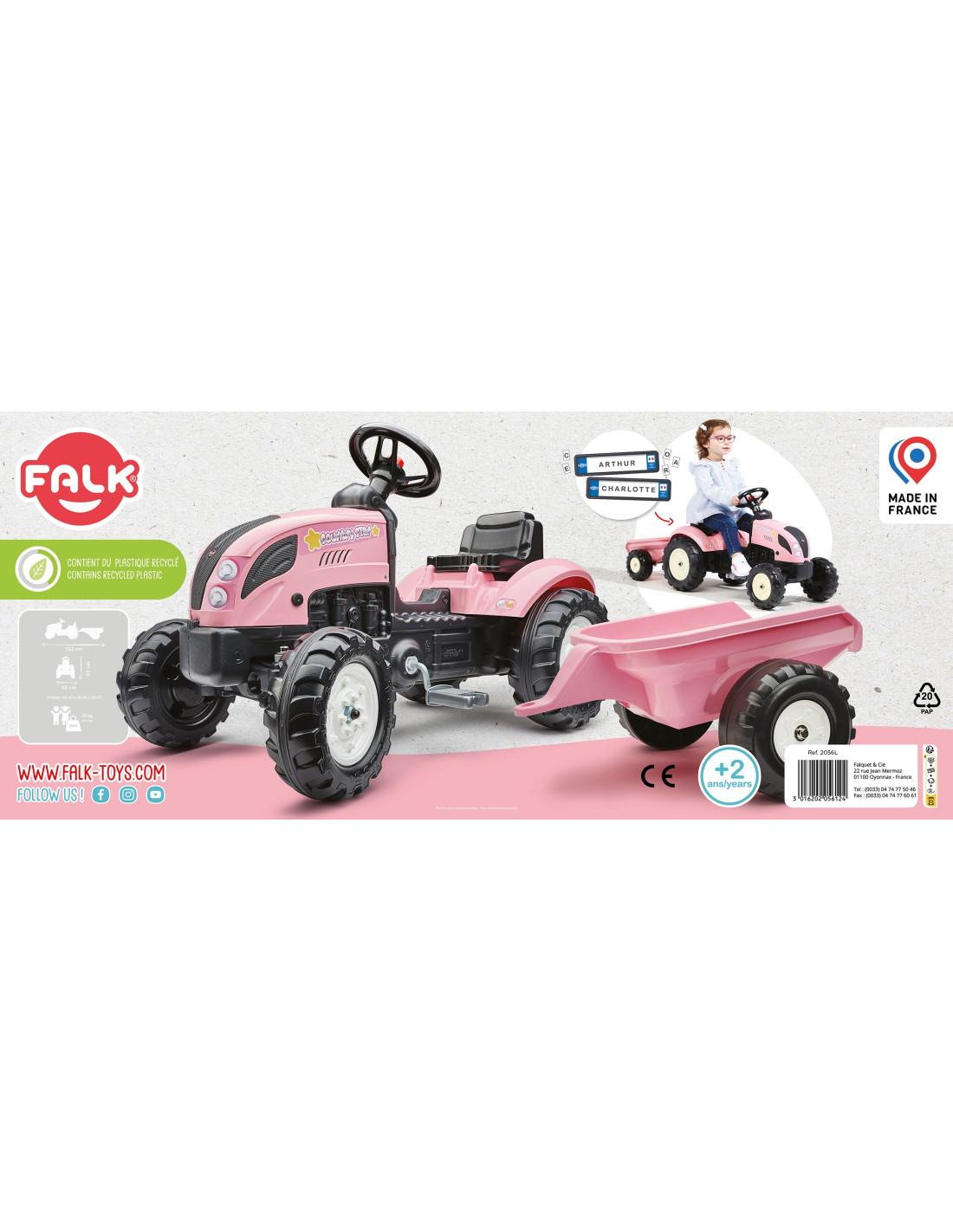 Falk is a leading European manufacturer of high-quality pedal-powered vehicles . The company's offering includes licensed tractors from brands such as Claas, Renault, McCormick, Kubota, Case IH, and others . All vehicles are manufactured in France using high-quality materials.