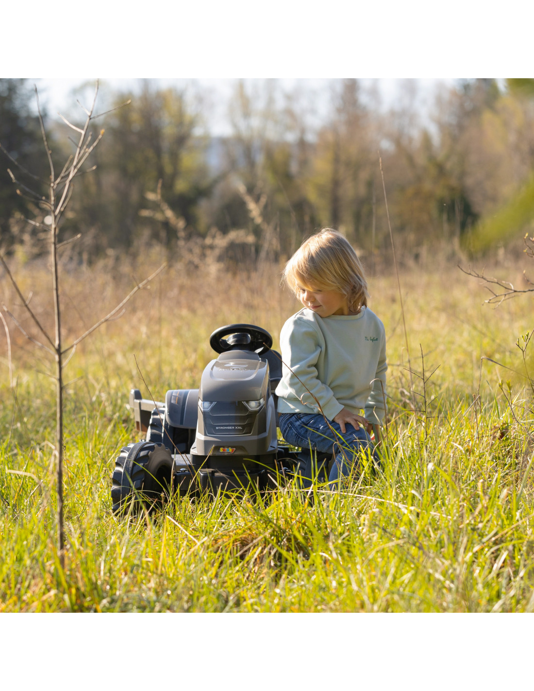 The Stronger XXL gray pedal tractor is a dream come true for many a young tractor driver. Meticulously crafted, with attention to the smallest detail, no true farmer would turn down a ride.