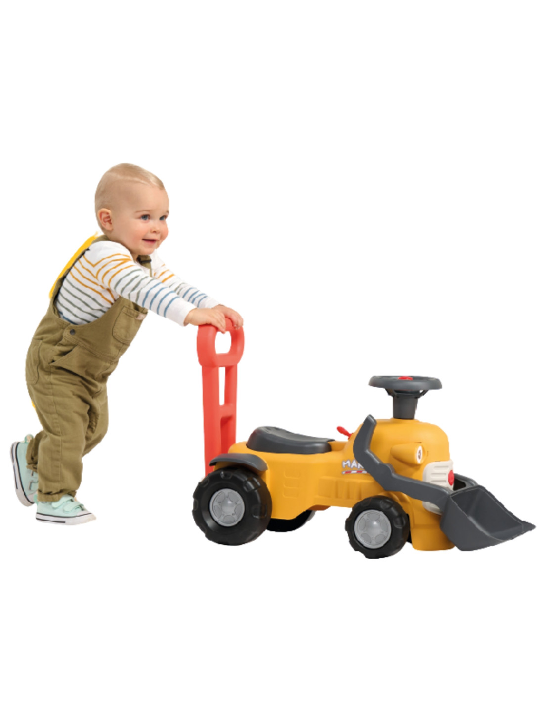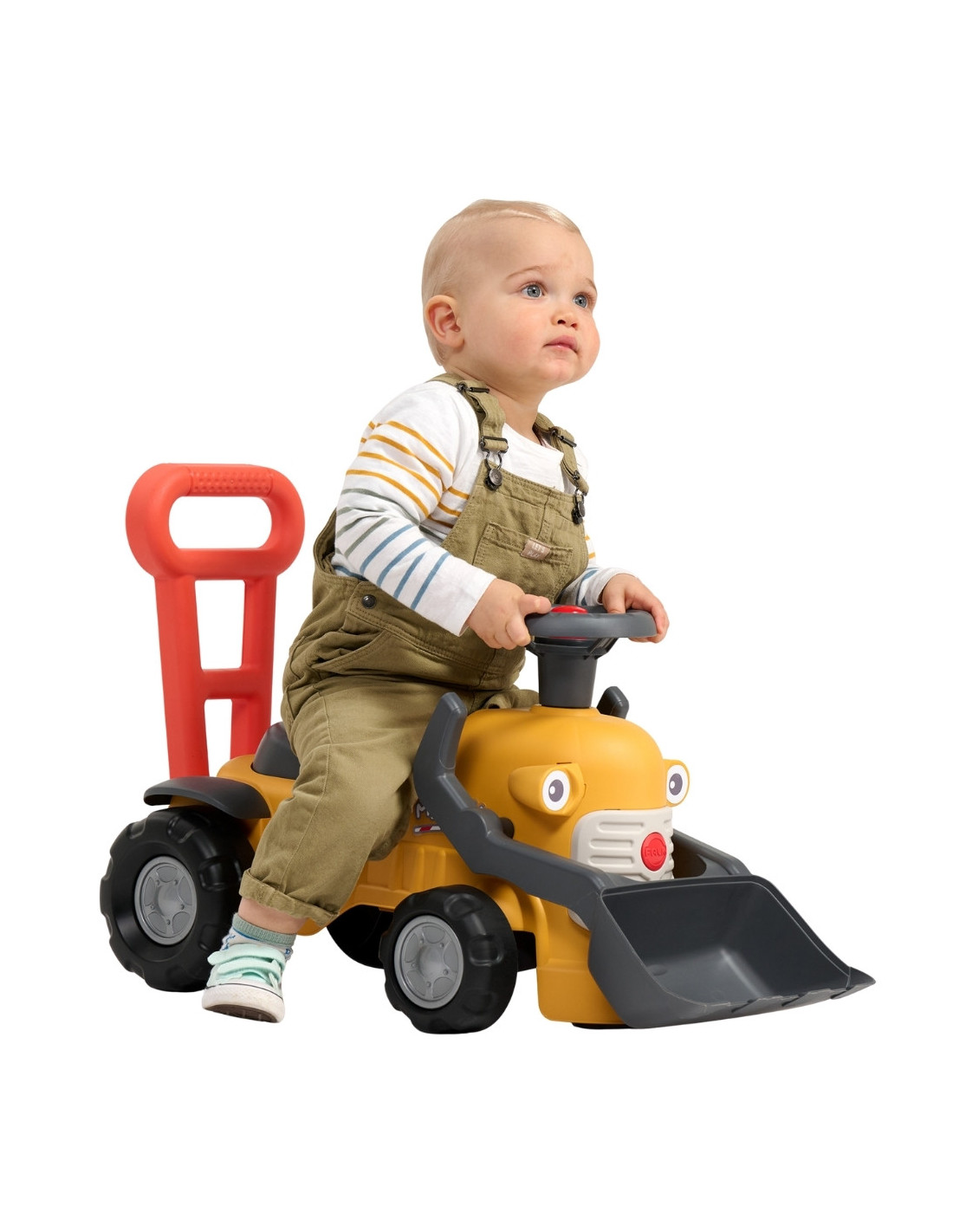 The Marcel Ride-On Excavator from FALK is the first compact vehicle with a working front bucket, steering wheel with horn, and a handy push handle, inviting children from 12 months onward to play indoors and outdoors. Its sturdy construction and thoughtful details, like the clicking key, swivel steering wheel, and under-seat storage compartment, ensure that every ride combines movement with role-playing.