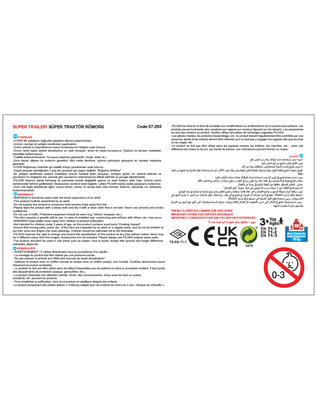 - - Maximum load is 35 kg