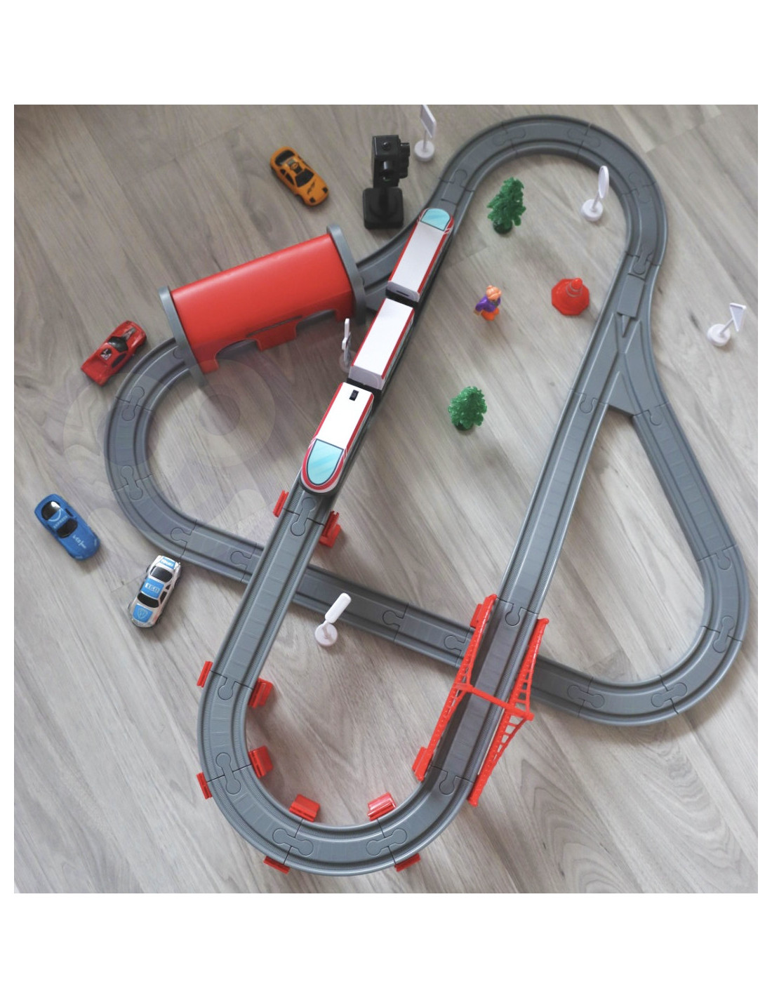 Kolejka Elektryczna od renomowanej marki Woopie to idealna propozycja dla fanów motoryzacji i kolei. Kolorowa kolejka ucieszy dzieci w każdym wieku, przysporzy wielu atrakcji i nieskończonych emocji. Zestaw zawiera 80 elementów, w tym m.in. nowoczesną lokomotywę na baterie, elementy toru, znaki drogowe oraz samochodziki. Zabawka ta, to jednak nie tylko mnóstwo radości, ale także ogromne możliwości rozwoju dla dziecka. Szczególnie rozwija się orientacja przestrzenna, zmysł techniczny oraz oczywiście wyobraźnia. Kolejka pakowana w oryginalne pudełko, idealnie nadające się na prezent.