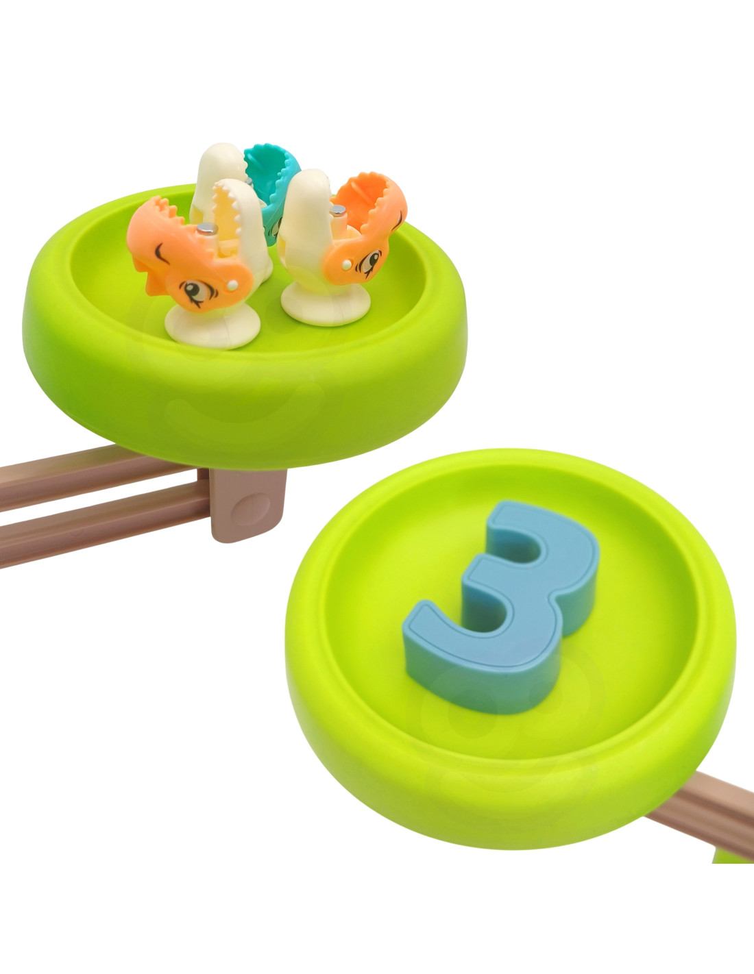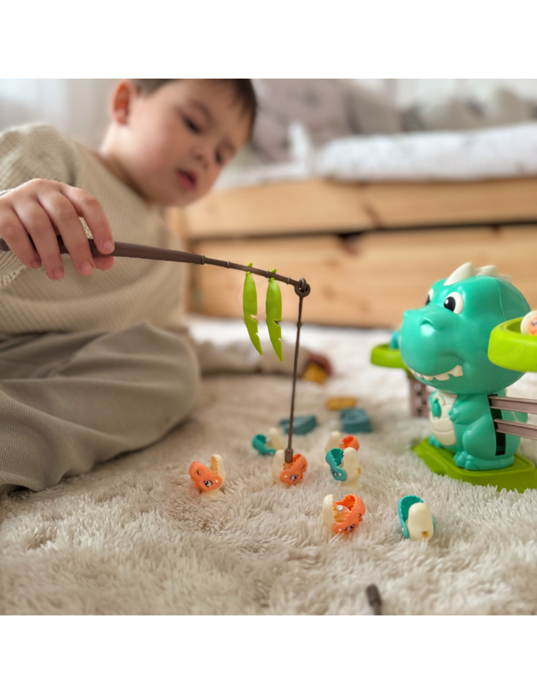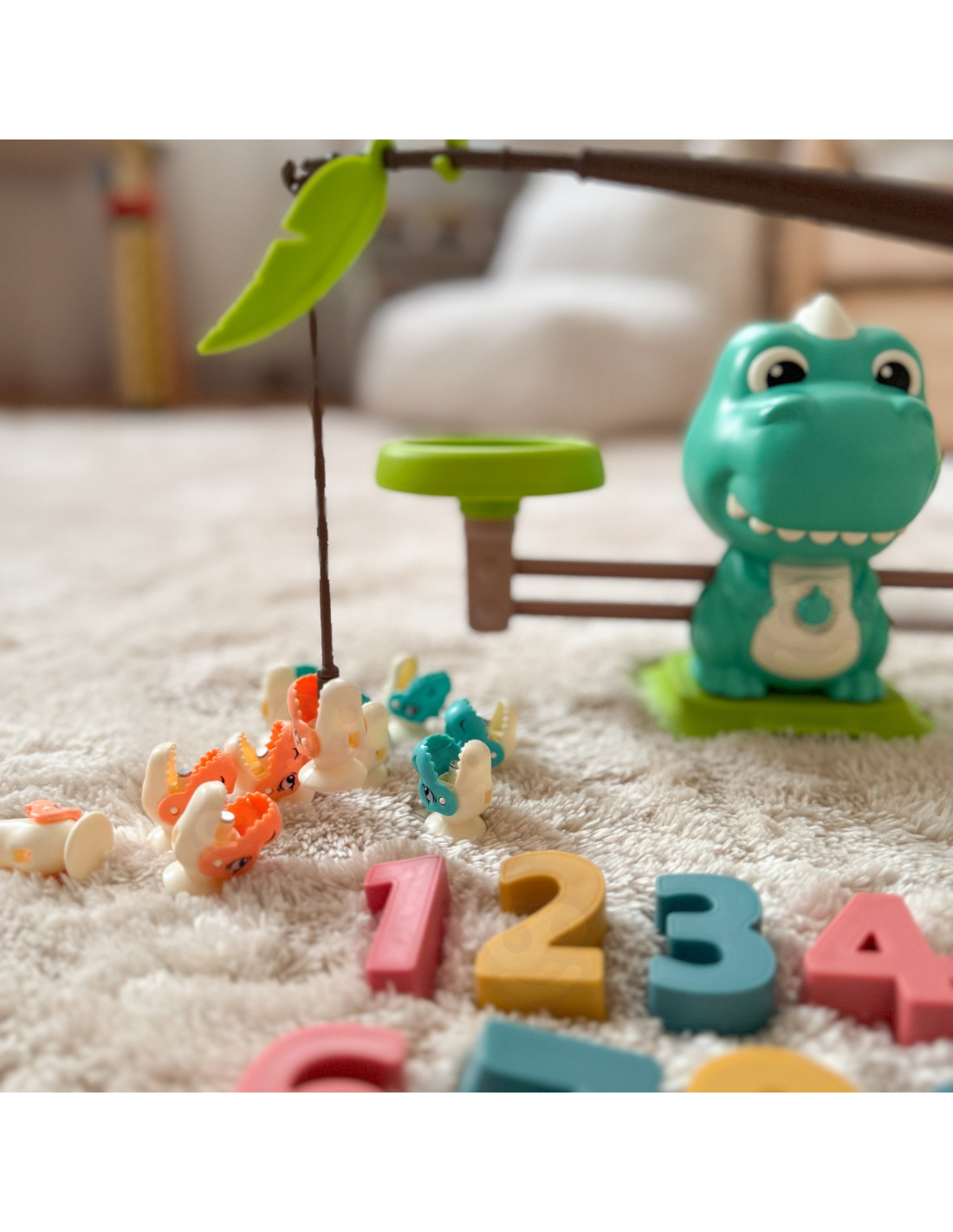 The WOOPIE Dinosaur Balance Beam will encourage learning about the world, numbers, and math, and in between, you can take a break for a game of dinosaur fishing ! A large dinosaur sits on the base, allowing you to play with a scale. Behind the dinosaur, there's room for fishing rods, and you can attach the leaves from the set to them. The set includes 10 weights ; one weight corresponds to one animal from the set, meaning weight 1 corresponds to one dinosaur, weight 2 corresponds to two dinosaurs, and so on. Additionally, there are cards with operations and answers. This toy is perfect for stimulating imagination , encouraging creative and unconventional thinking, and also wonderfully developing manual dexterity in young children. It also provides lots of fun while learning.