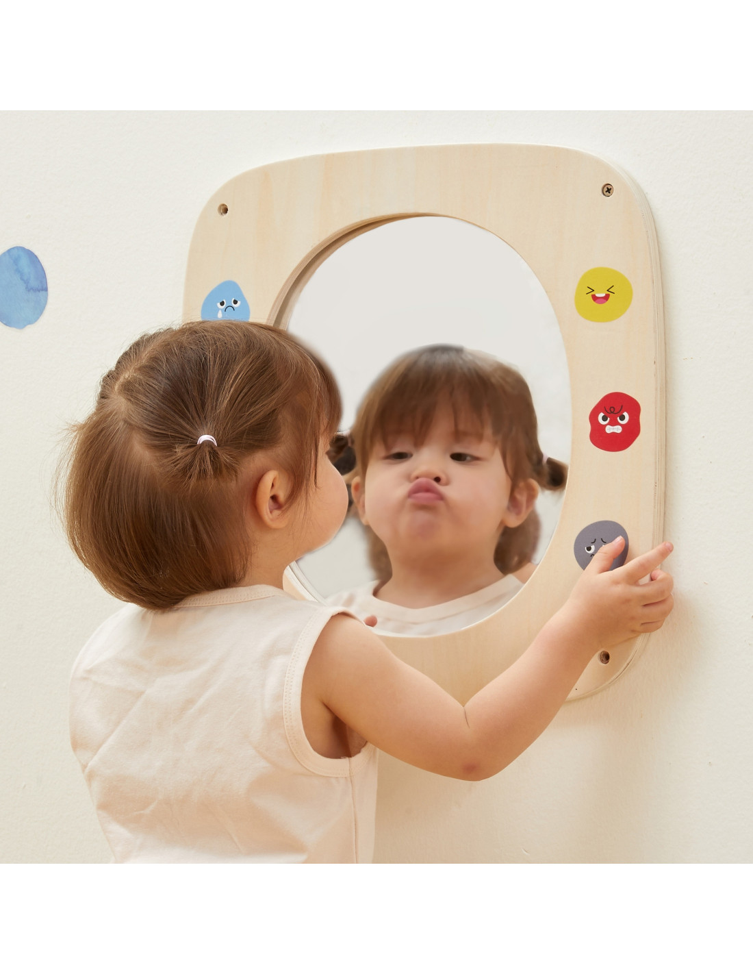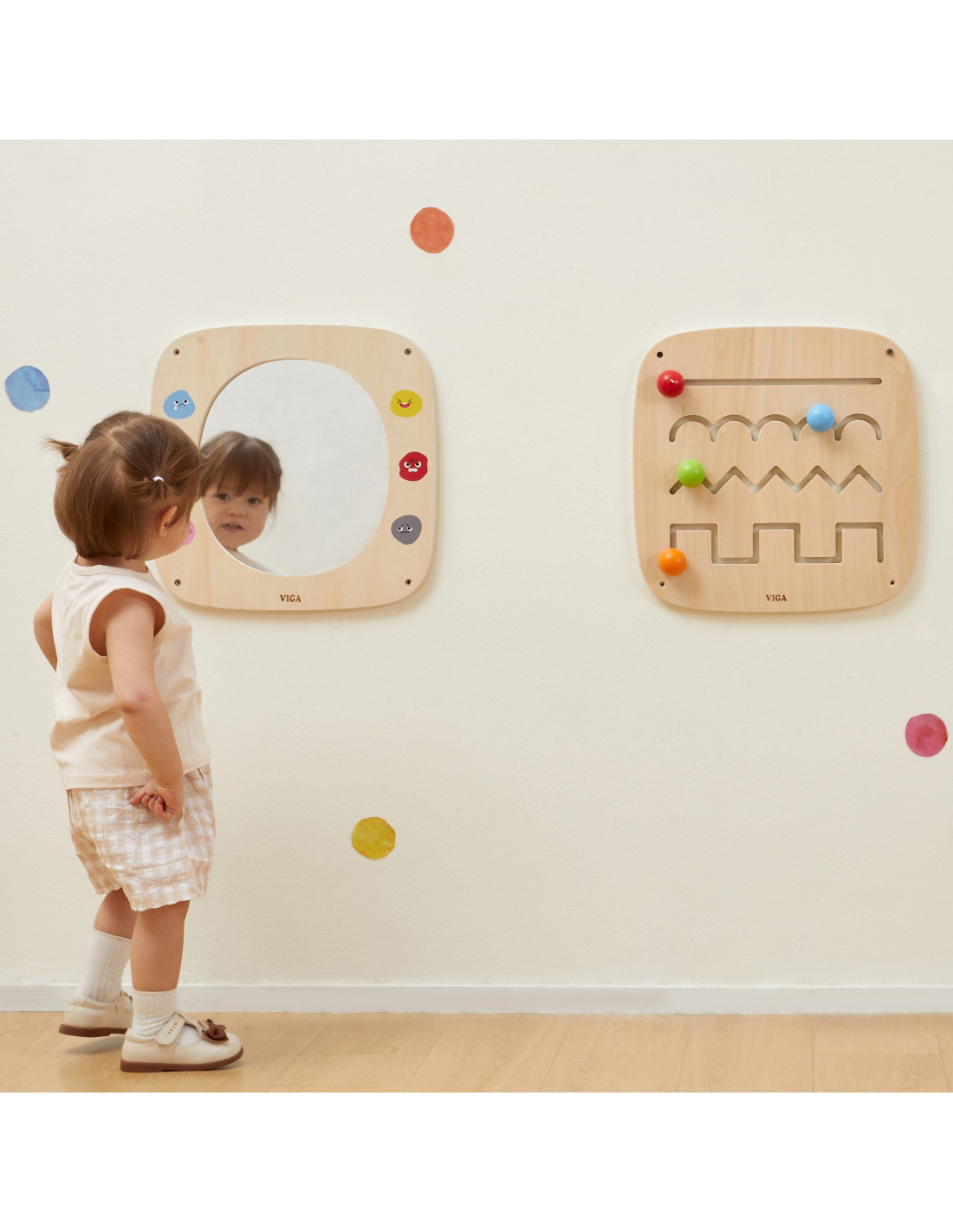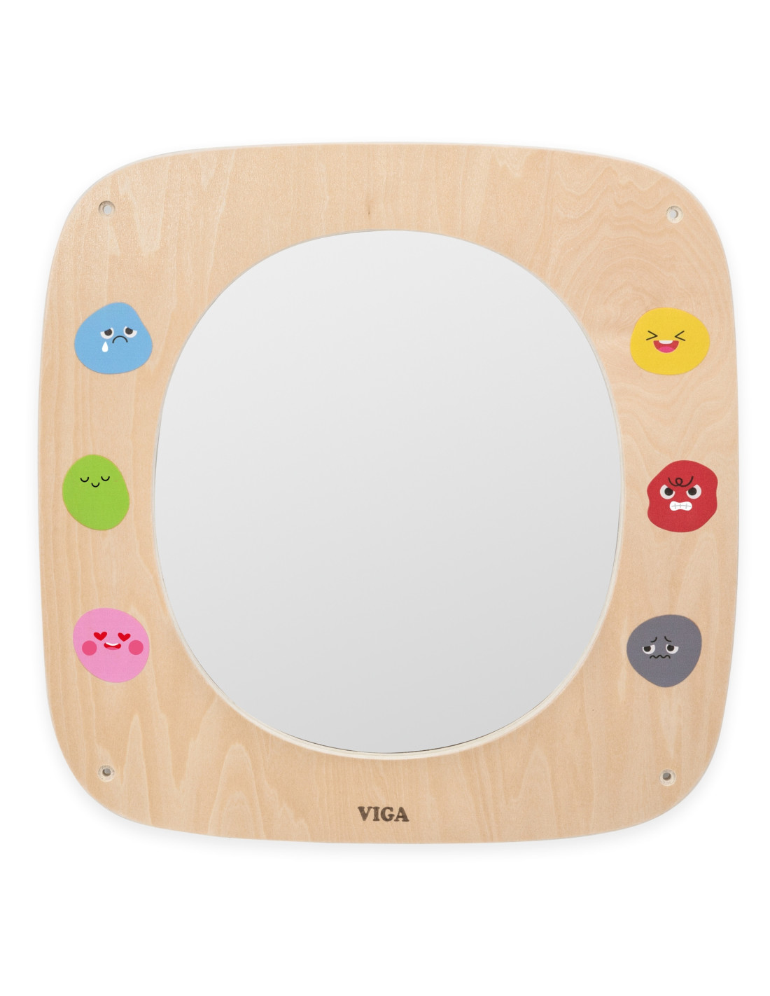 This wooden board from Viga is the perfect tool for learning through play, designed with young children in mind. It supports emotional and motor development , allowing toddlers to explore the world of emotions in an interactive and engaging way. At the center of the board is a safe mirror surrounded by six colorful, expressive faces representing various emotions, such as joy, sadness, anger, and peace. Children can observe their reflection and imitate their facial expressions, fostering emotional awareness and helping with facial muscle coordination. The board is easy to mount on the wall, and its sturdy wooden construction ensures durability and safety during play.