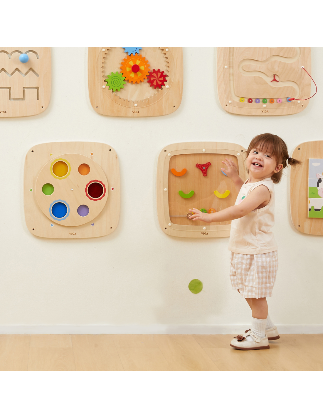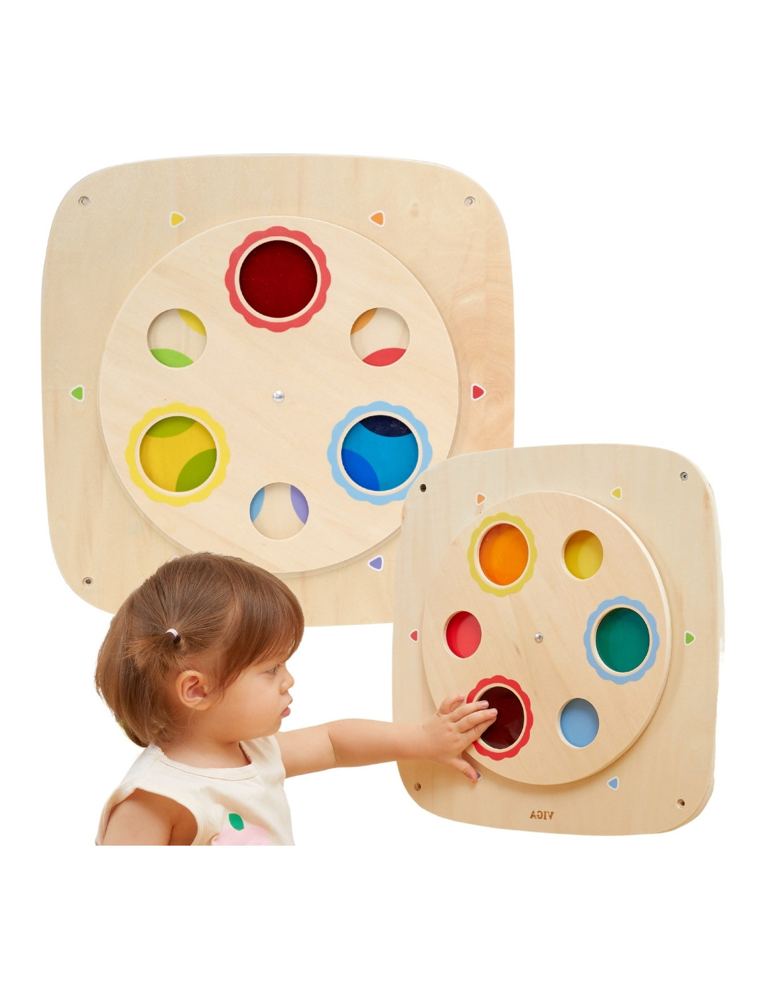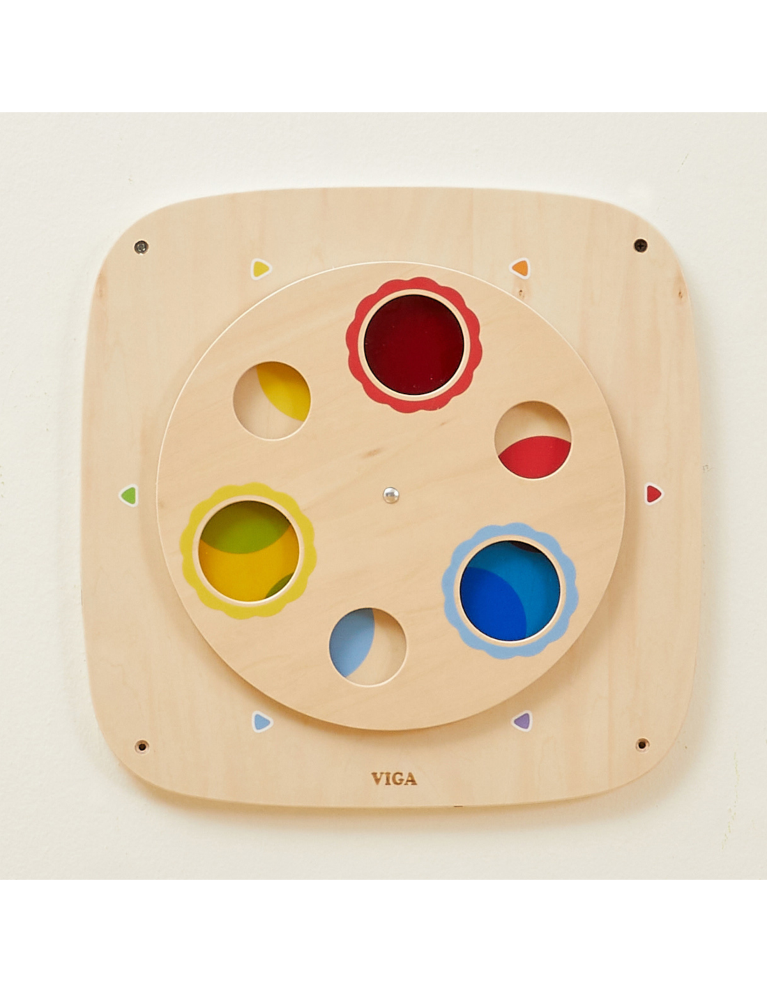 Discover the magical world of color with this interactive wooden board from VIGA ! This educational toy was created to teach children color theory and cause-and-effect relationships in a fun and practical way. Thanks to the rotating top panel, children can experiment with combining colors to create new shades. The panel is durable, safe, and easy to mount on the wall , saving floor space. It's the perfect addition to a toddler's room, preschool, or play area.