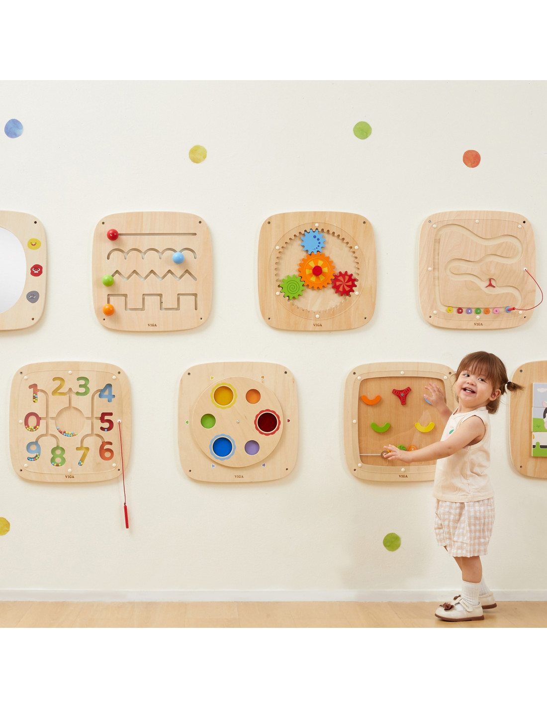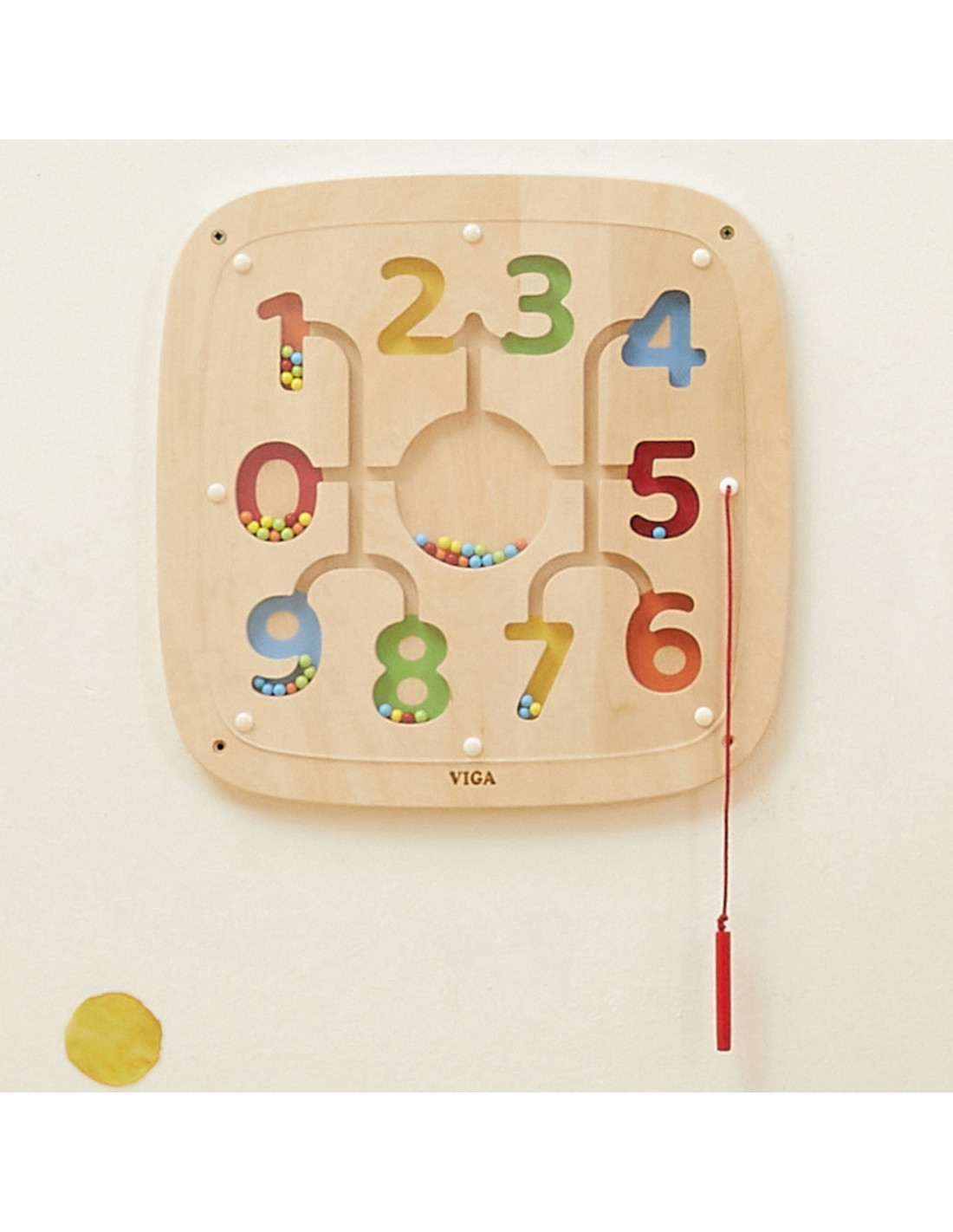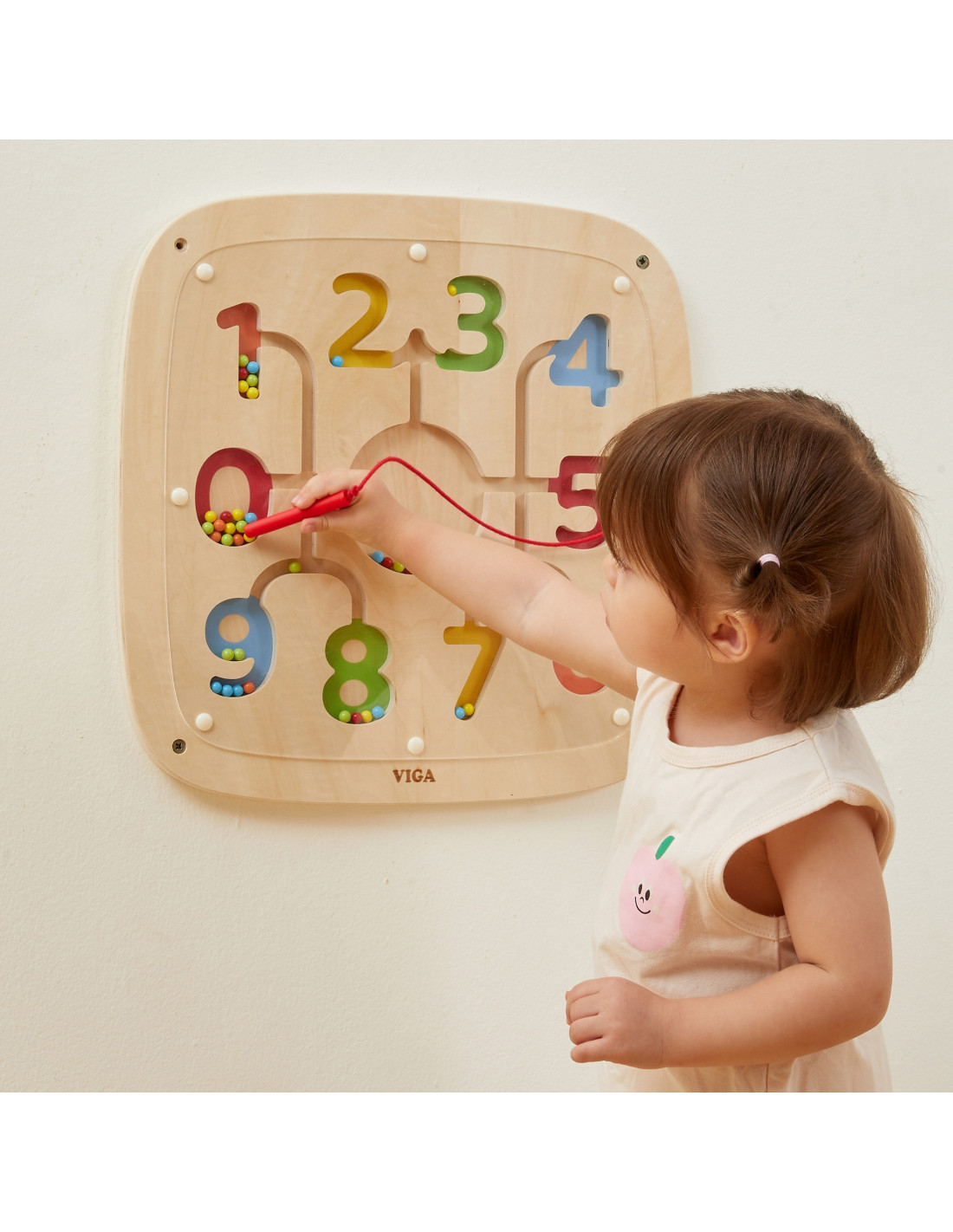 Explore the playful world of numbers and colors with this interactive wooden board from VIGA ! This educational toy was created to teach children counting, color recognition, and precise movements in a practical and fun way. With the help of a magnetic stylus , your child will move colorful beads, matching them to the corresponding numbers and tracks. It's a great way to develop math and manual skills all at once! The board is durable, safe, and easy to mount on the wall , saving floor space.
