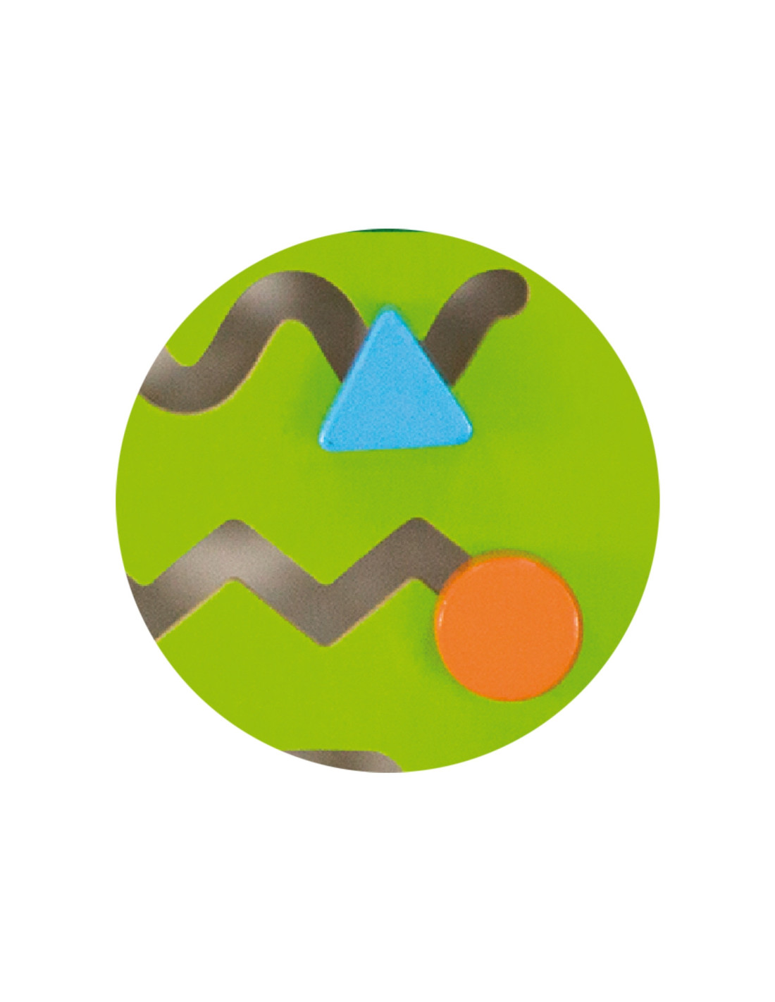 - - na tablicy znajdują się 3 labirynty do przesuwania klocków z kształtami trójkąta, koła i kwadratu,