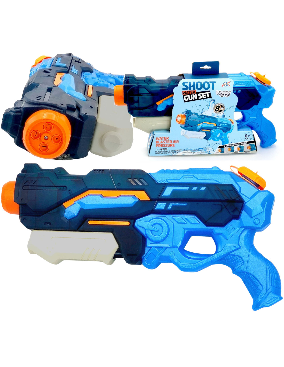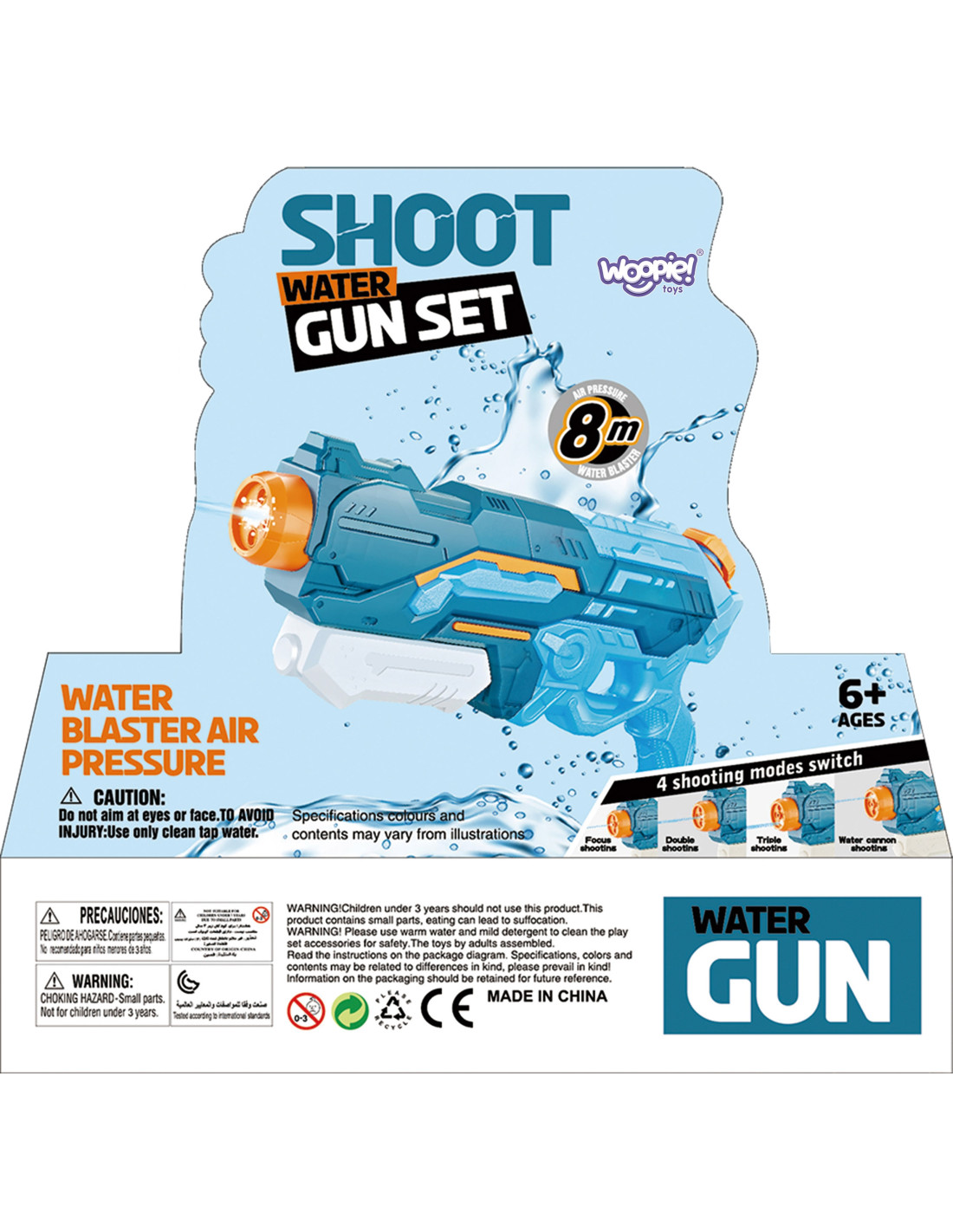 The WOOPIE Water Gun is a water toy designed for children that provides hours of outdoor fun, especially on warm days. The main feature of this water blaster is its air-pressure- based propulsion mechanism. Children pump water into the tank, creating pressure that allows them to shoot a jet of water up to 8 meters away. This water gun is a great toy that provides children with a lot of fun while promoting physical activity and social interaction.