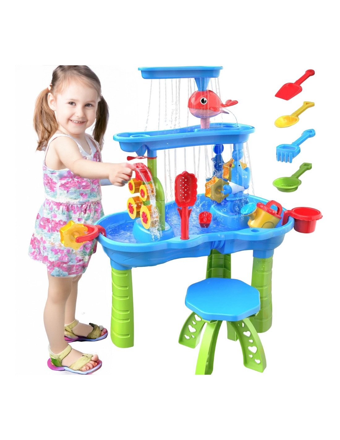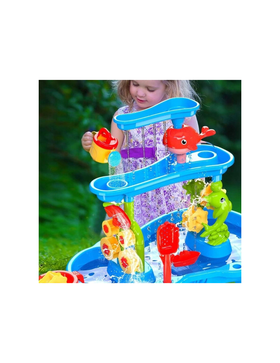 The unique WOOPIE water table is the perfect way to have fun all year round, regardless of the weather. It's not only fantastic fun on hot days, but also a great way to beat boredom when the weather turns colder. This unique table features an advanced, three-tiered water system that's sure to delight any child! Little explorers can use the watering can to pour water into the upper chamber and then watch the waterfall flow into the lower reservoir, setting the waterwheel in motion. Additionally, with the included accessories, this table can also be used for sand play, both regular and kinetic , making it a versatile toy for any occasion.