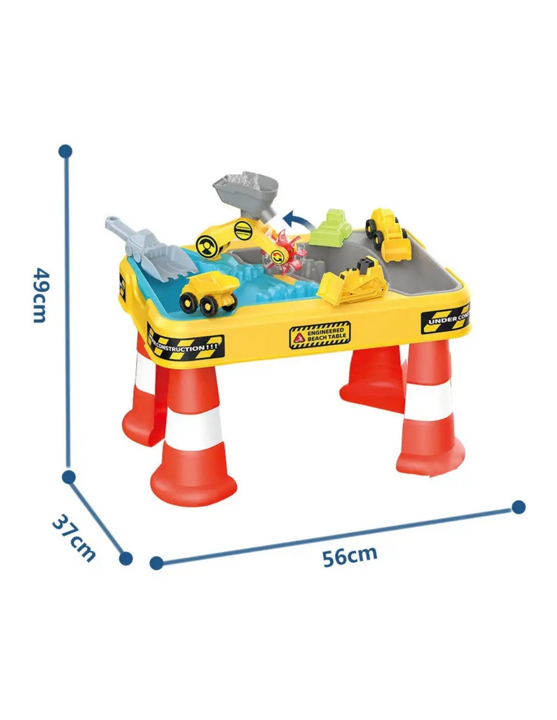 Immerse yourself in a world of creative play with this large construction-themed water and sand table! This colorful and sturdy set combines the functions of a table, sandbox, and water pool, guaranteeing children endless hours of engaging and developing play. Perfect for use in the garden, on the patio, at the beach, or at home.