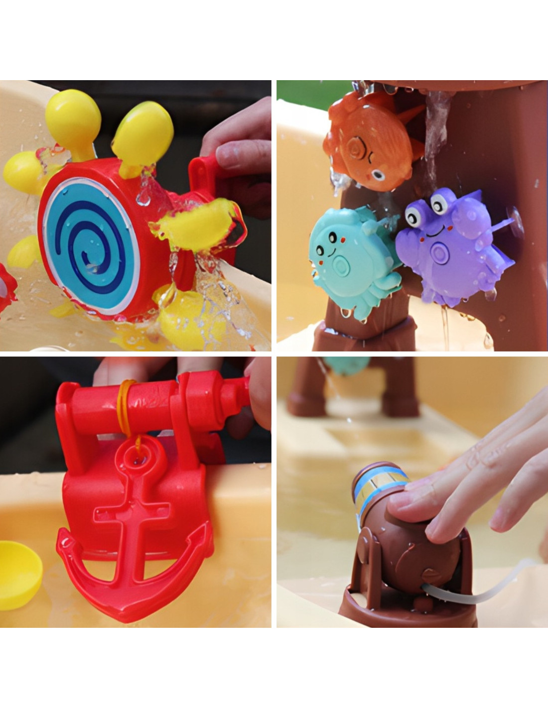 The Woopie Pirate Boat Water Table is a unique toy that transports children to a world of pirate adventures and provides hours of creative outdoor play. With a rich set of colorful accessories, moving parts, and a pirate tower, little ones can experiment with water, play with bubbles, spin the water wheel, and discover countless play possibilities. Its simple, sturdy construction and large size make the table comfortable and attractive, even for several children at once.