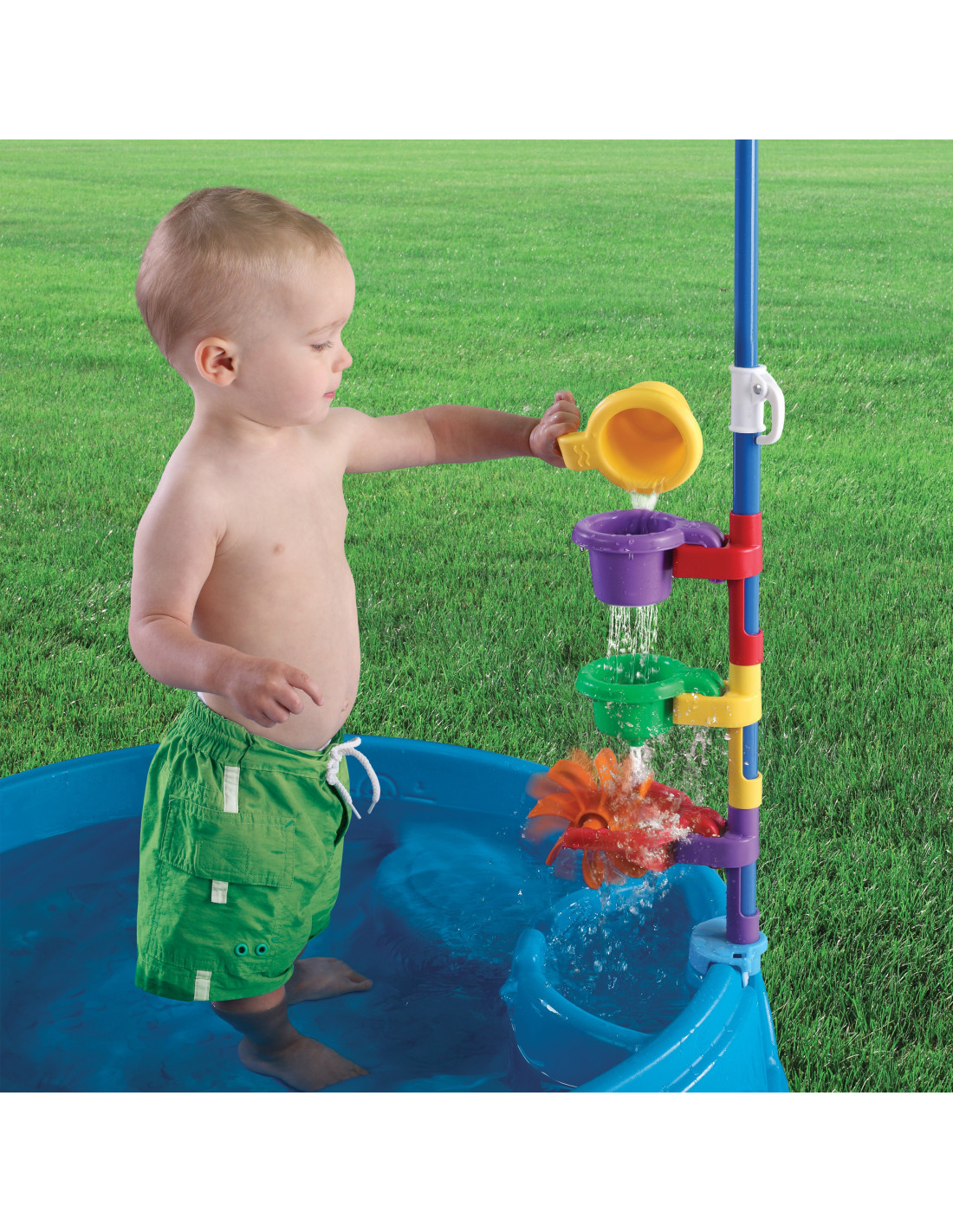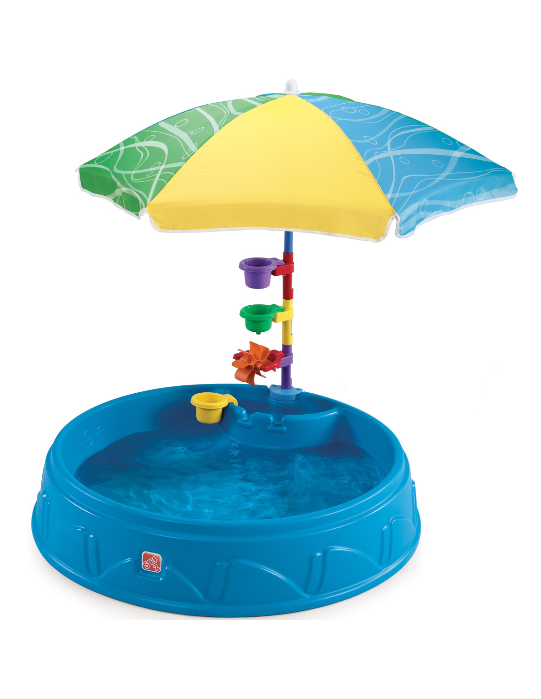 Basen Ogrodowy dla Dzieci z Parasolem od renomowanej marki Step2 to idealne rozwiązanie na upalne dni! Solidna i trwała konstrukcja zapewnia bezpieczną zabawę na świeżym powietrzu. Basen został wyposażony w kolorowy parasol, który zapewni dzieciom cień w upalne dni. Tyczka parasola służy do mocowania dołączonych do basenu akcesoriów takich jak sitko czy młynek wodny. Dno basenu posiada antypoślizgowe wytłoczenia zapewniające przyczepność dla małych stópek. Na brzegach basenu nie mogło zabraknąć także dwóch odpowiednio wyprofilowanych siedzisk. Maksymalne obciążenie każdego z nich wynosi 23 Kg. Basen Play & Shade Pool pomieści ok 45 L wody lub ok 75 Kg piasku.
