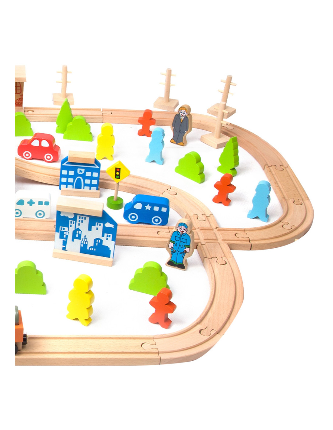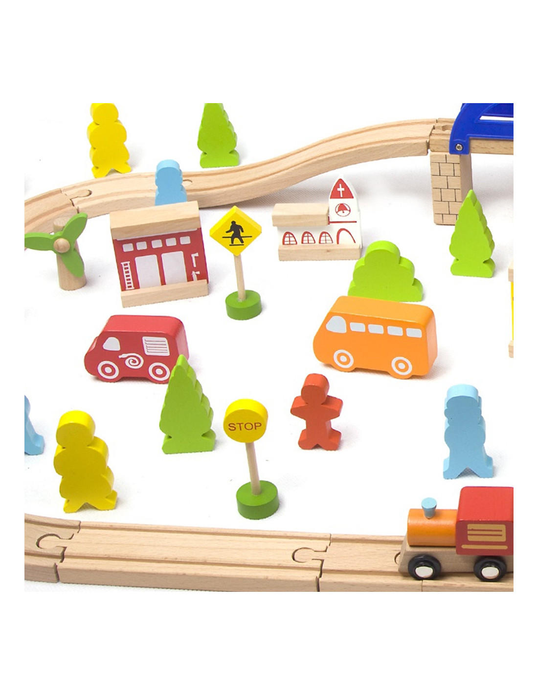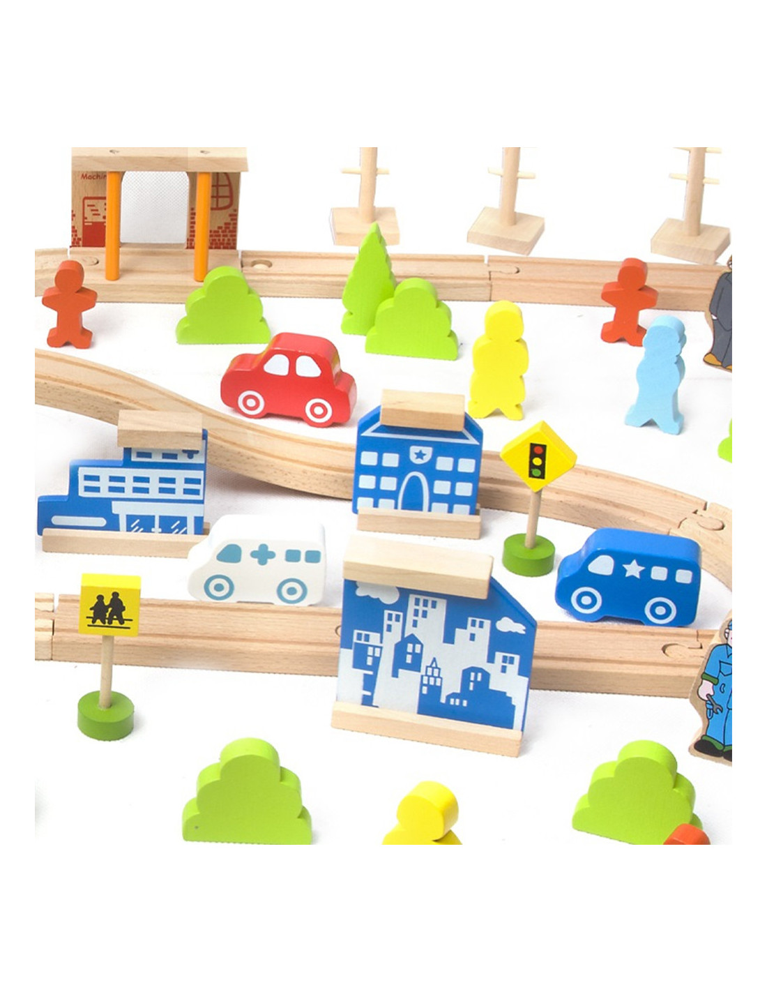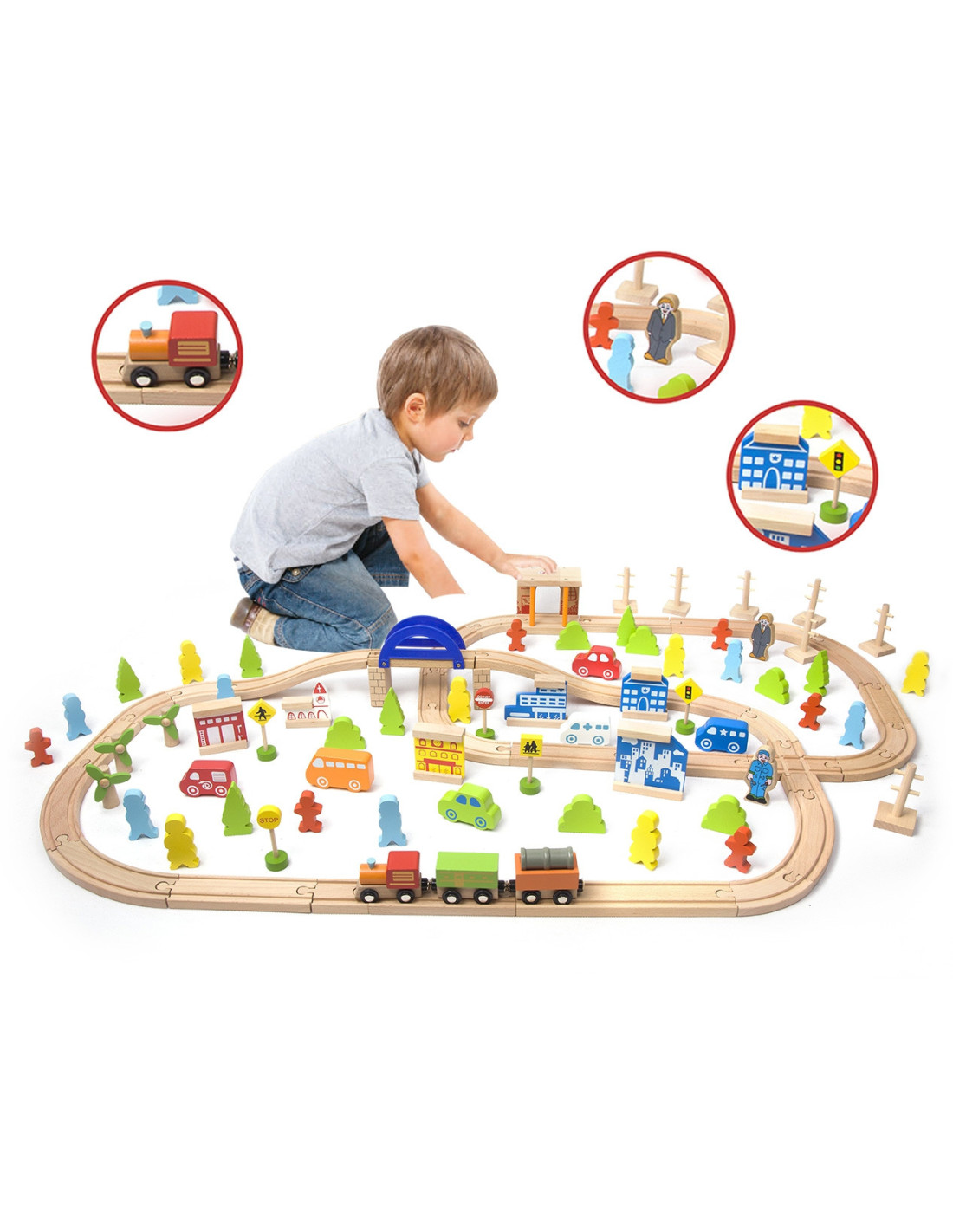 Ogromny zestaw marki Classic World. Drewniana kolejka do złożenia ze 110 elementów to wspaniały prezent dla każdego dziecka, który lubi zabawę pojazdami, oraz makietami.