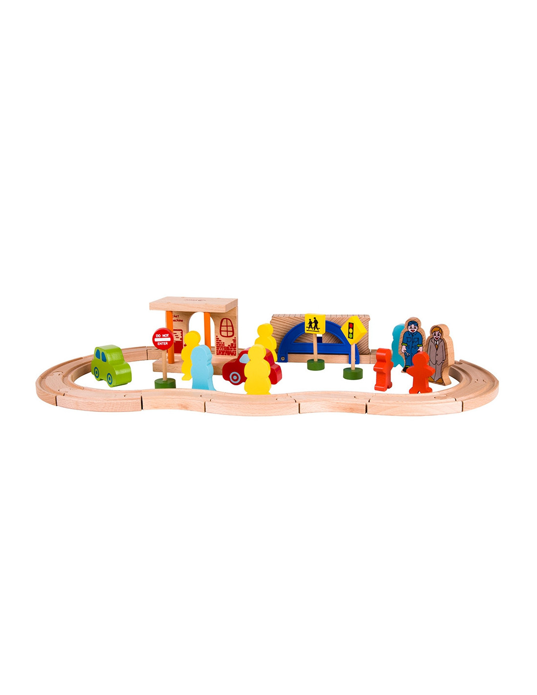 - - Ten składający się ze 110 elementów zestaw kolejkowy zawiera mnóstwo przeróżnych akcesoriów, różnych budynków i pojazdów.