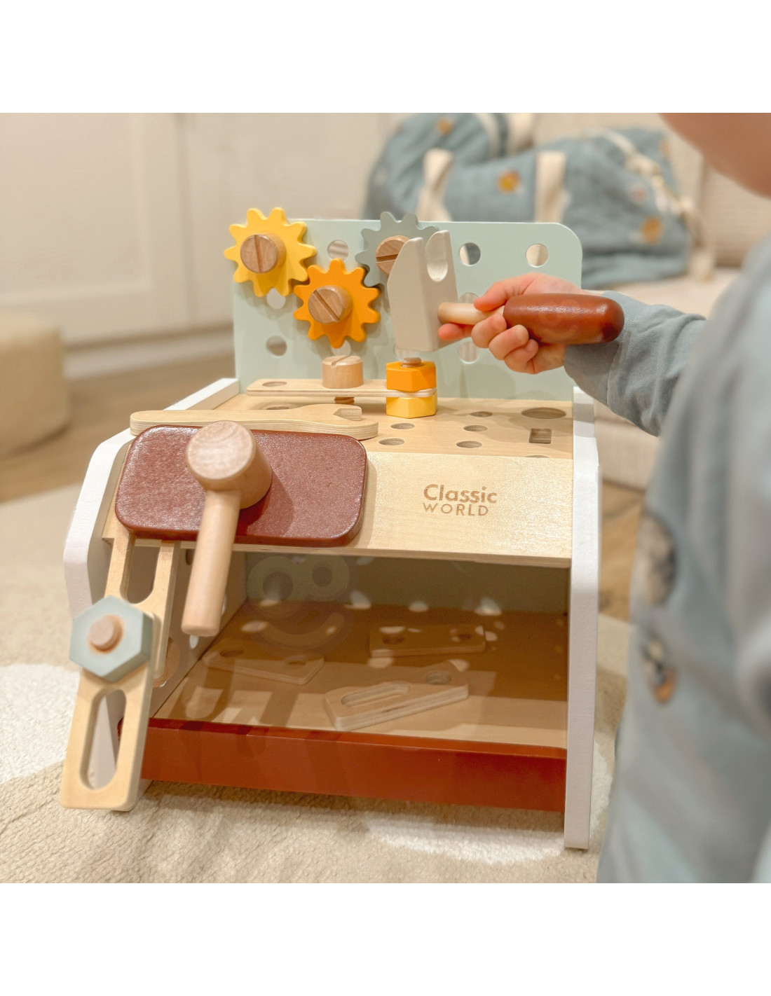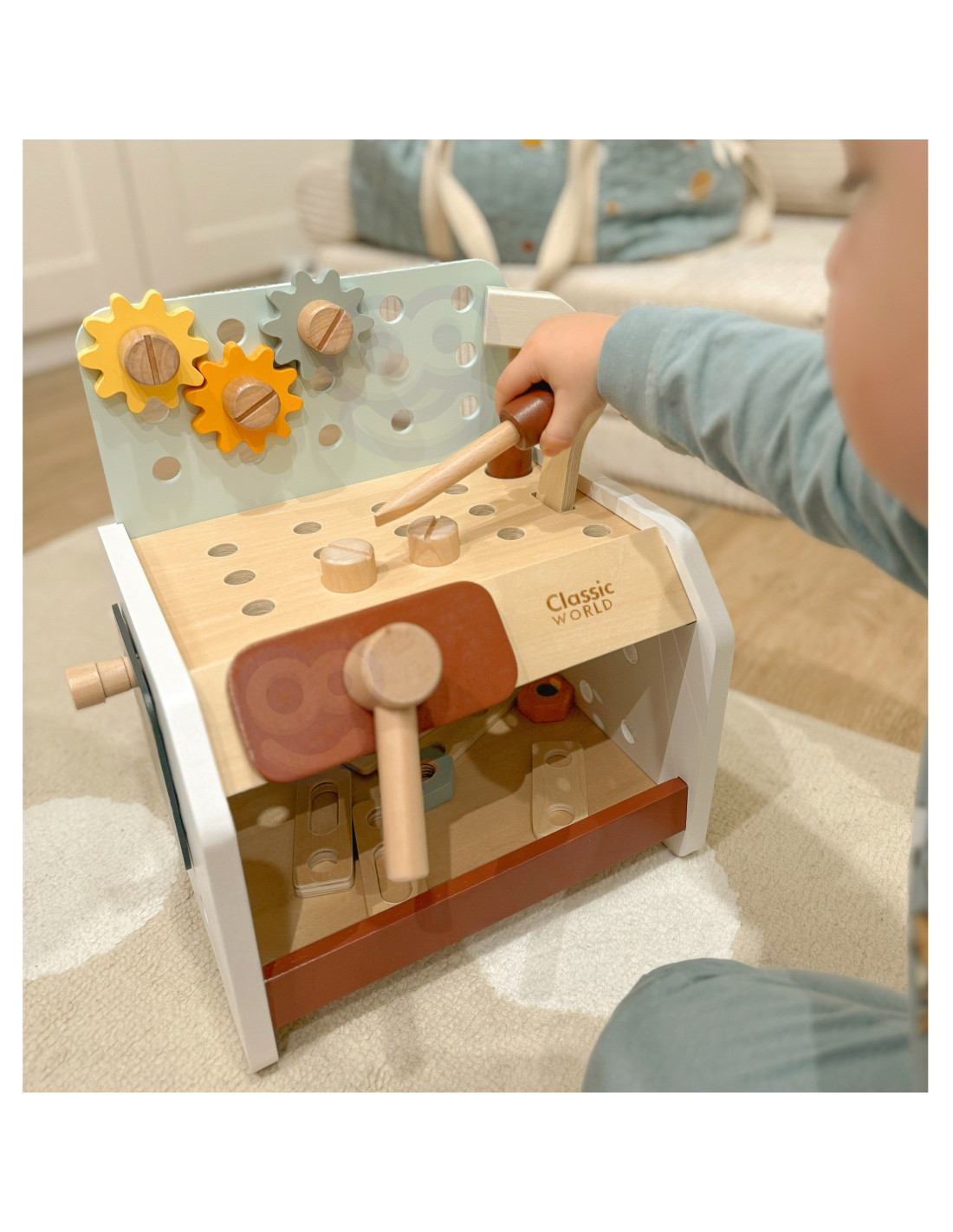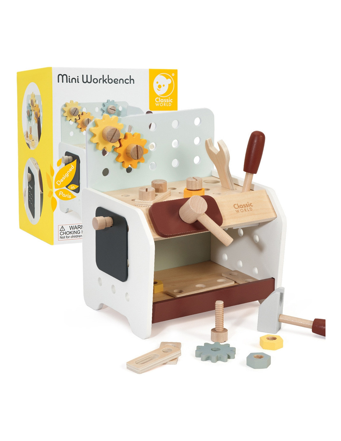This wooden workbench from Classic World will provide great fun for every little DIY enthusiast. Thanks to the many tools included, tinkering will support the development of manual skills , spark interest, and ignite children's imaginations . From now on, every toddler will have the opportunity to hone their creativity, as the set includes everything they need for repairing, screwing, driving nails, and other renovation tasks. The set is made of high-quality wood and has no sharp edges, making it safe for children and the environment .